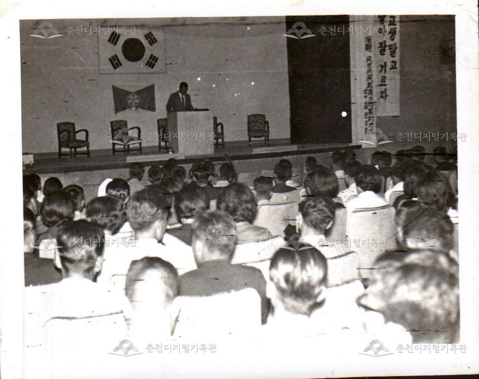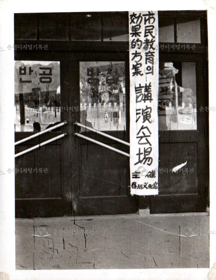 명사 초청 강연회 사진 등록번호 00002128 생산일자 미상 생산지역 춘천시 봉의동 생산자 춘천문화원 수집처 춘천문화원 소장자 춘천학연구소 내용 1960년대 강원도립문화관(이후 춘천시립문화관, 춘천시민회관으로 개칭)에서 열린 김관수 교수 초청 강연회의 사진이다. 시민교육의 효과적 방안을 주제로 진행되었다. 춘천문화원이 주최하였다. 자세히 보기 닫기 사용안내 비상업적 이용만 가능|©춘천디지털기록관 상업적 사용·수정·재배포는 저작권자 동의 필요 다운로드 목록보기