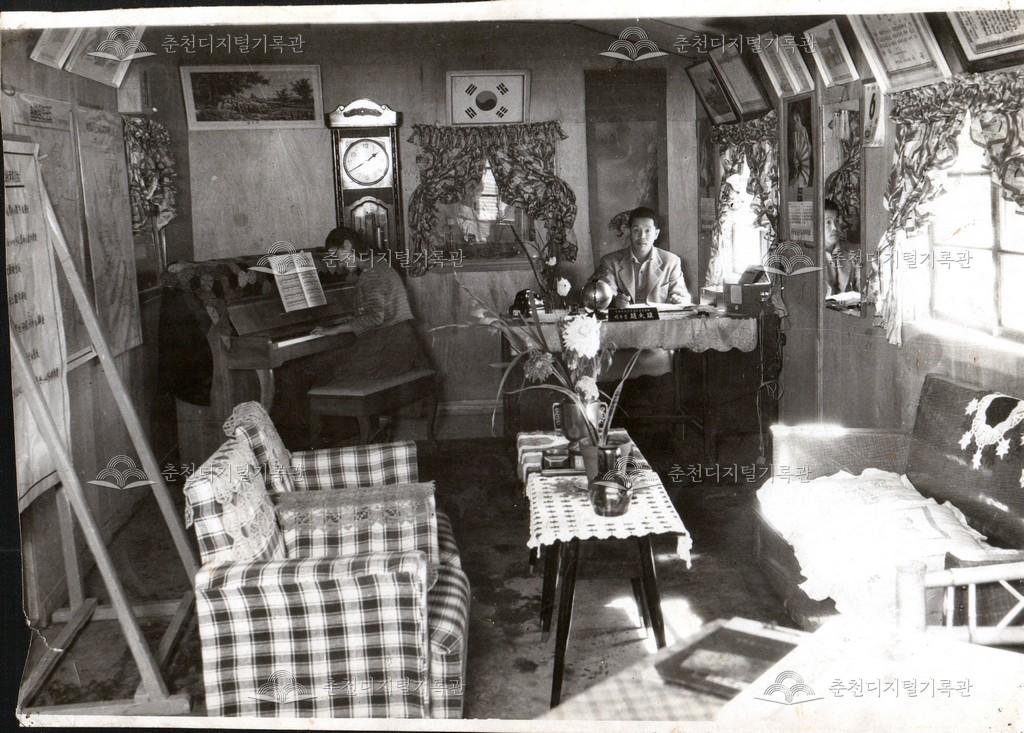 강원유선방송 사진 등록번호 00002180 생산일자 미상 생산지역 춘천시 생산자 춘천문화원 수집처 춘천문화원 소장자 춘천학연구소 내용 1960년대 춘천문화원이 운영한 강원유선방송국의 사무실 사진이다. 사용안내 비상업적 이용만 가능|©춘천디지털기록관 상업적 사용·수정·재배포는 저작권자 동의 필요 다운로드 목록보기