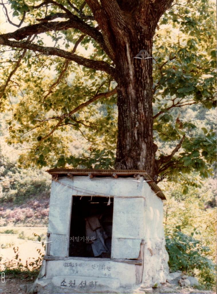 동산면 밭치리 성황당 사진 등록번호 00002245 생산일자 1980 생산지역 춘천시 동산면 생산자 춘천문화원 수집처 춘천문화원 소장자 춘천학연구소 내용 1980년에 촬영한 동산면 밭치리의 성황당 사진이다. 현재는 골프장 개발로 사라졌다. 사용안내 비상업적 이용만 가능|©춘천디지털기록관 상업적 사용·수정·재배포는 저작권자 동의 필요 다운로드 목록보기