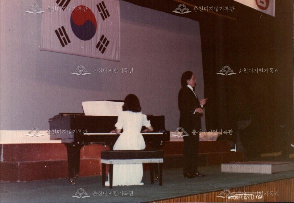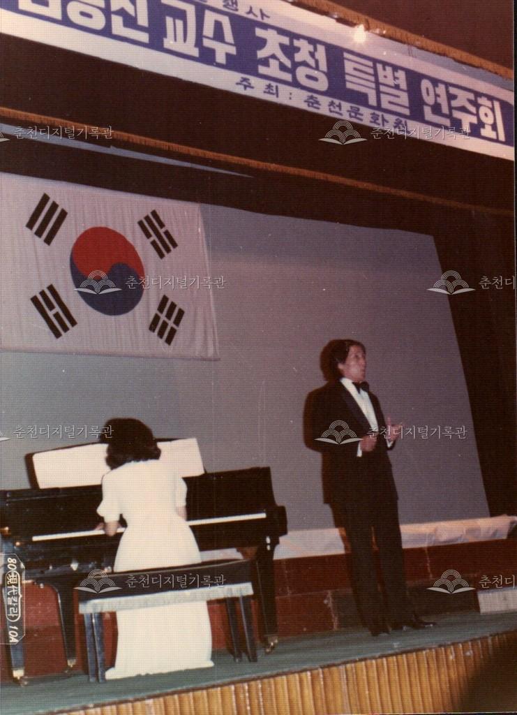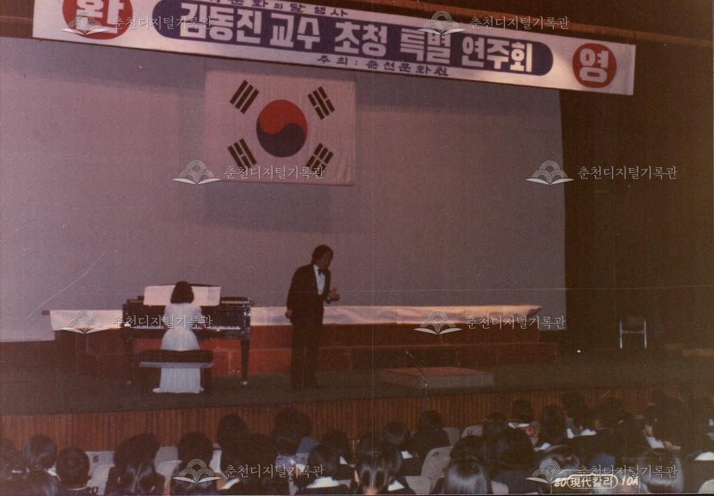 김동진 교수 초청 특별 연주회 사진 등록번호 00002251 생산일자 1980.10.18 생산지역 춘천시 봉의동 생산자 춘천문화원 수집처 춘천문화원 소장자 춘천학연구소 내용 1980년 춘천시립문화관(이후 춘천시민회관으로 개칭)에서 열린 김동진 교수 초청 특별 연주회의 사진이다. 10회 문화의 달 행사로 춘천문화원이 주최하였다. 자세히 보기 닫기 사용안내 비상업적 이용만 가능|©춘천디지털기록관 상업적 사용·수정·재배포는 저작권자 동의 필요 다운로드 목록보기