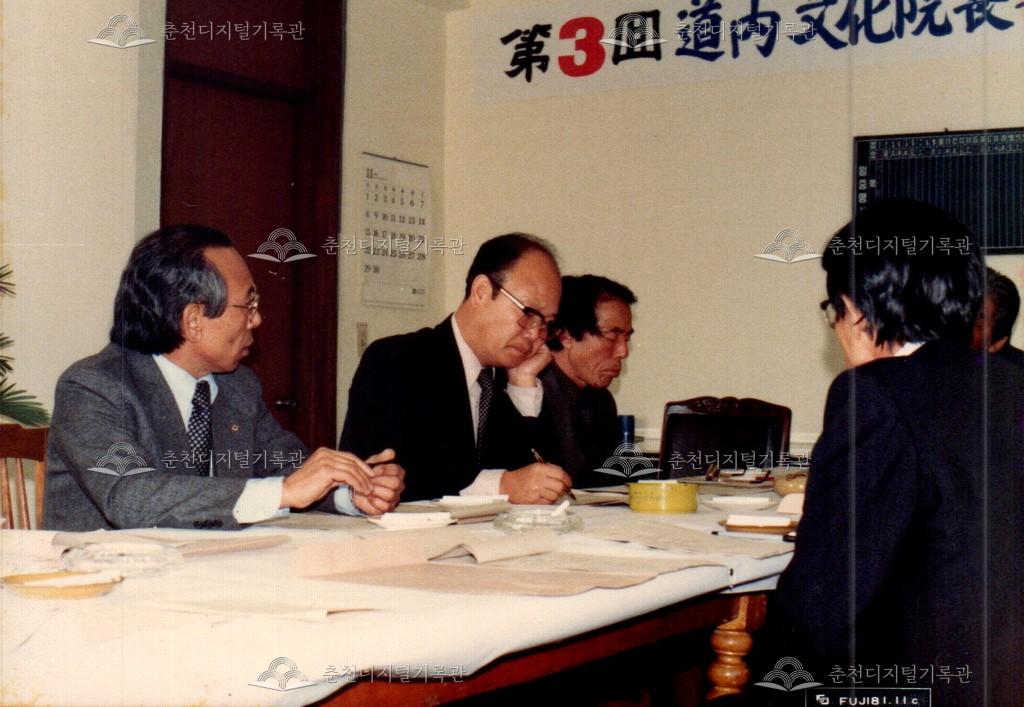 제3회 도내문화원장사무국장연석회의 사진 등록번호 00002254 생산일자 1981.11 생산지역 춘천시 생산자 춘천문화원 수집처 춘천문화원 소장자 춘천학연구소 내용 1981년 제3회 도내 문화원장 사무국장 연석 회의의 사진이다. 5대 원장 방임섭 원장의 모습이 보인다. 사용안내 비상업적 이용만 가능|©춘천디지털기록관 상업적 사용·수정·재배포는 저작권자 동의 필요 다운로드 목록보기