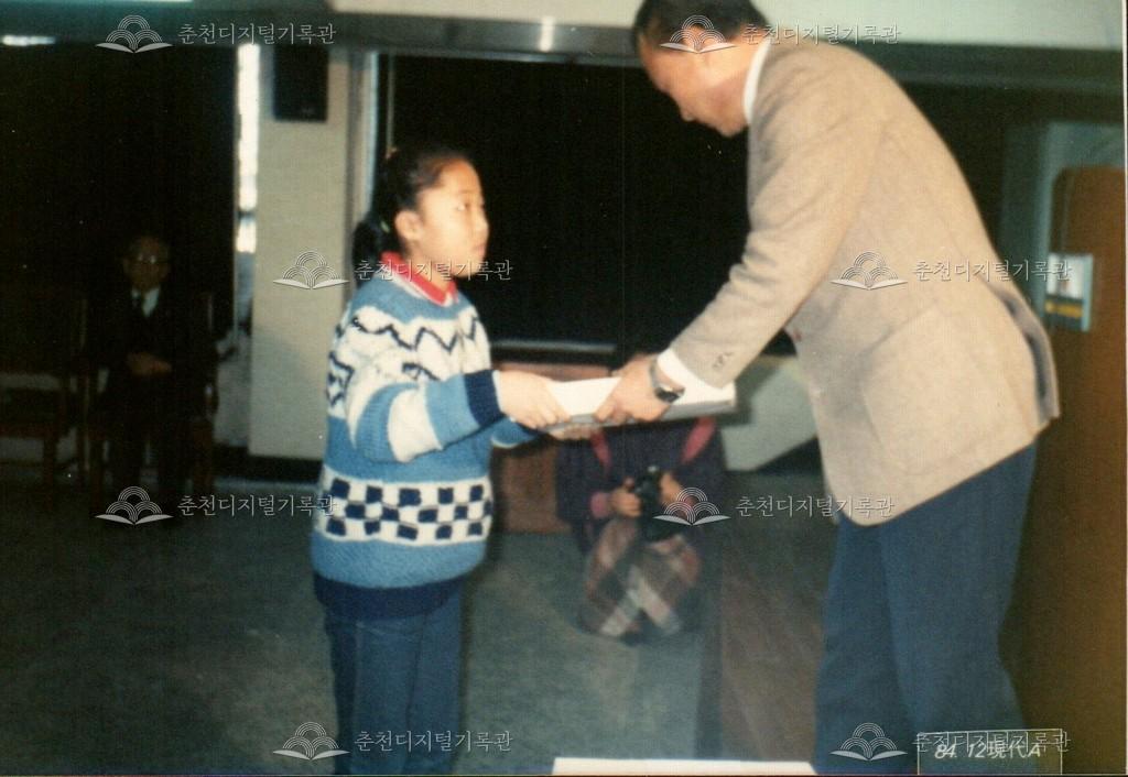 1984년 양서읽기 시상식의 사진이다. 춘천문화원의 주최로 진행되었다. 문화원 박영찬 7대 원장(두 번째 사진)이 시상을 하는 모습이 보인다.