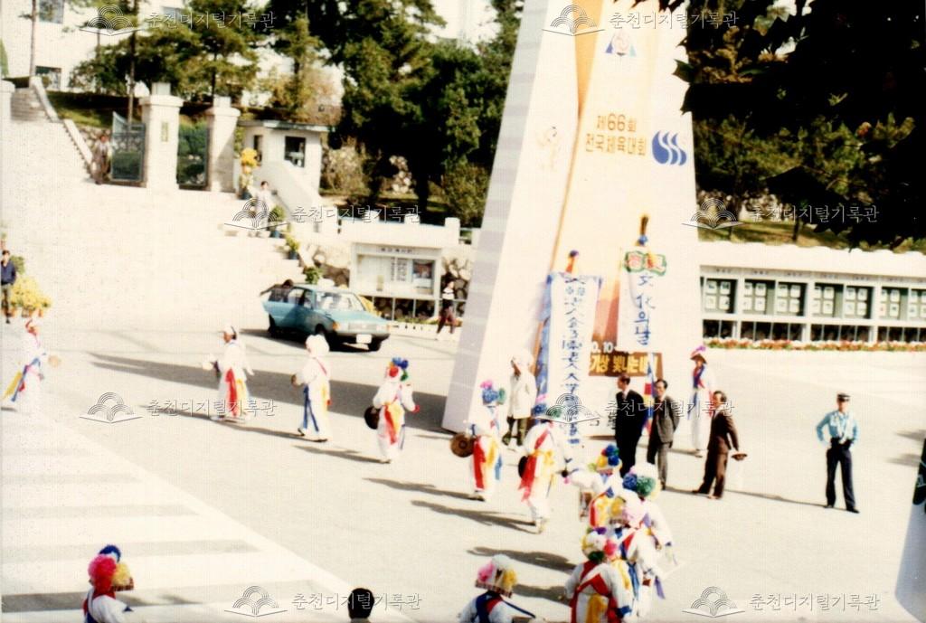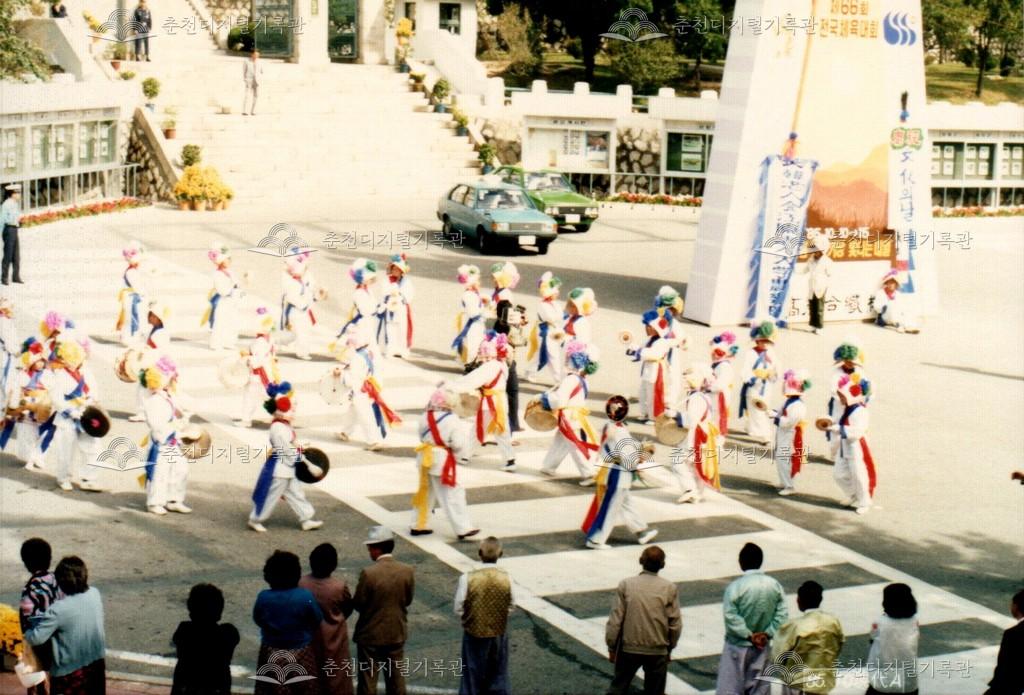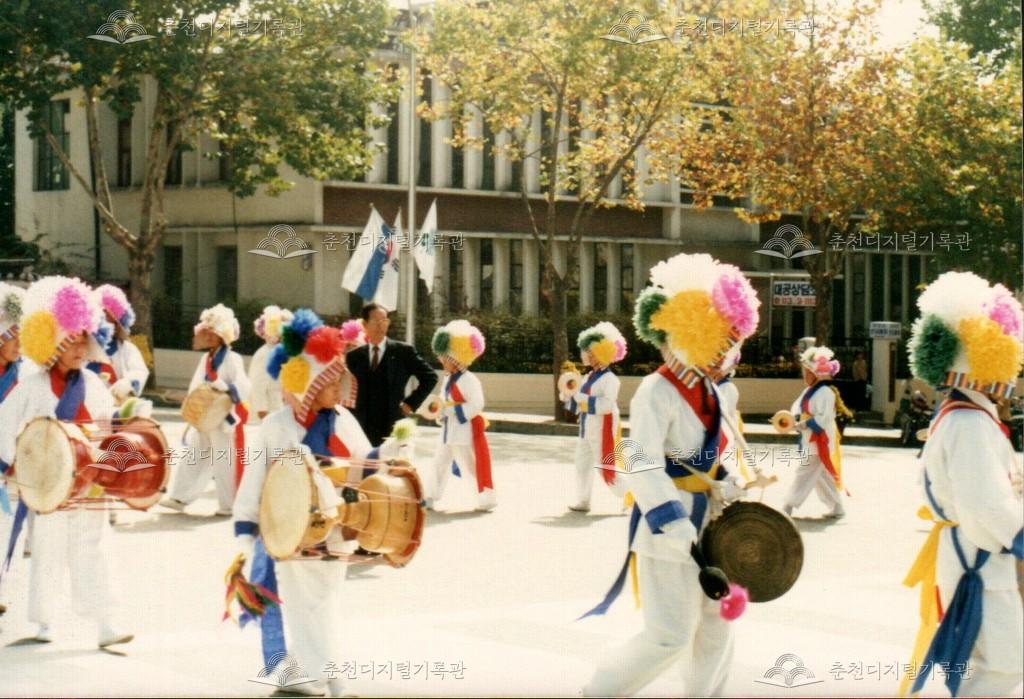 강원노인대학농악대 사진 등록번호 00002279 생산일자 1985 생산지역 춘천시 봉의동 생산자 춘천문화원 수집처 춘천문화원 소장자 춘천학연구소 내용 1984년에 촬영한 대한노인회 강원노인대학 농악대의 사진이다. 문화의 날을 기념하여 도청앞광장에서 길놀이를 하는 모습이다. 농악대의 뒤로 제66회 전국체육대회 홍보 건축물이 보인다. 자세히 보기 닫기 사용안내 비상업적 이용만 가능|©춘천디지털기록관 상업적 사용·수정·재배포는 저작권자 동의 필요 다운로드 목록보기