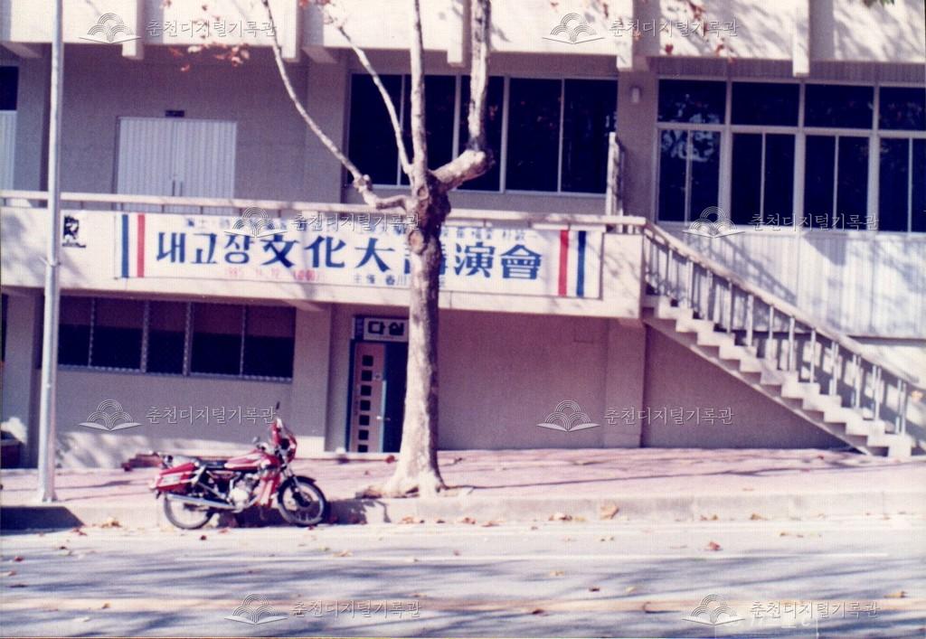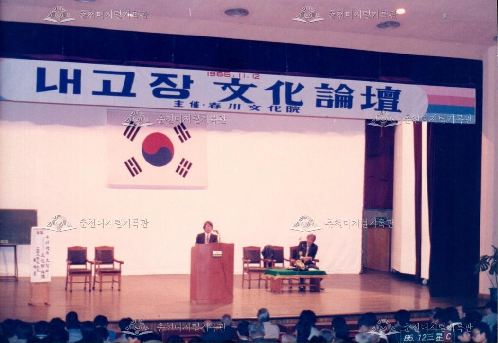 내고장문화논단(文化論壇) 사진 등록번호 00002280 생산일자 1985.11.12 생산지역 춘천시 봉의동 생산자 춘천문화원 수집처 춘천문화원 소장자 춘천학연구소 내용 1985년에 촬영한 내 고장 문화논단(文化論壇)의 사진이다. 춘천문화원 주최로 춘천시립문화관(이후 춘천시립회관으로 개칭) 문화대강연회장에서 개최되었다. 강연회장 안내표지판과 입구, 계단이 보인다. 자세히 보기 닫기 사용안내 비상업적 이용만 가능|©춘천디지털기록관 상업적 사용·수정·재배포는 저작권자 동의 필요 다운로드 목록보기
