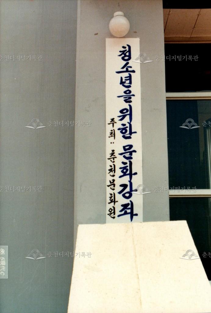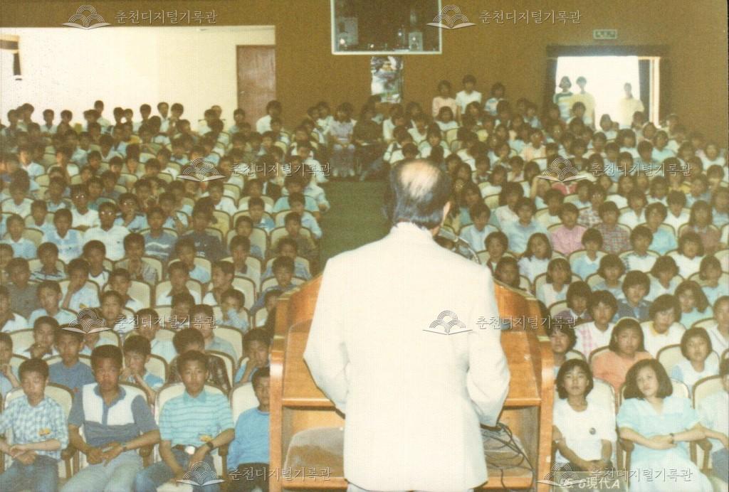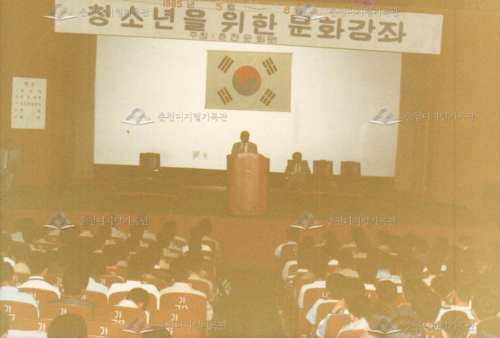 청소년을 위한 문화강좌 사진 등록번호 00002281 생산일자 1985.05 생산지역 춘천시 삼천동 생산자 춘천문화원 수집처 춘천문화원 소장자 춘천학연구소 내용 1985년 5월부터 8월 사이 열린 청소년을 위한 문화강좌의 사진이다. 춘천문화원 주최로 삼천동 안보회관(현재 자유회관)에서 개최되었다. 홍보 현수막을 설치한 의암공원 인근 삼거리와 교련복을 입고 참석한 학생들이 보인다. 자세히 보기 닫기 사용안내 비상업적 이용만 가능|©춘천디지털기록관 상업적 사용·수정·재배포는 저작권자 동의 필요 다운로드 목록보기