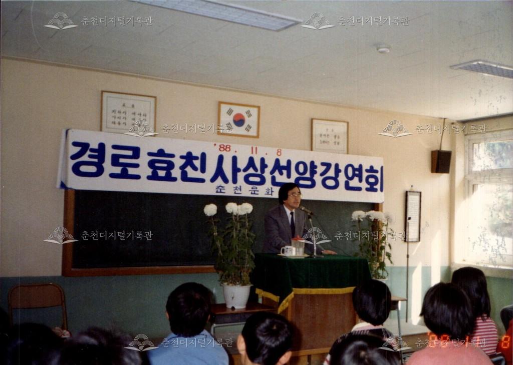 1988년 경로 효친 사상 선양 강연회의 사진이다. 춘천문화원 주최로 진행되었다.
