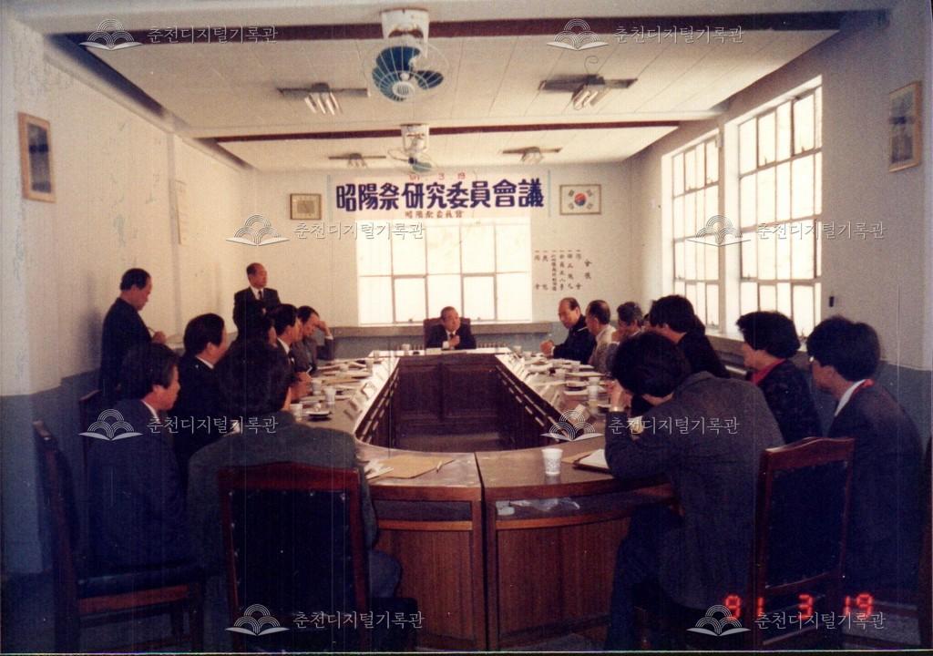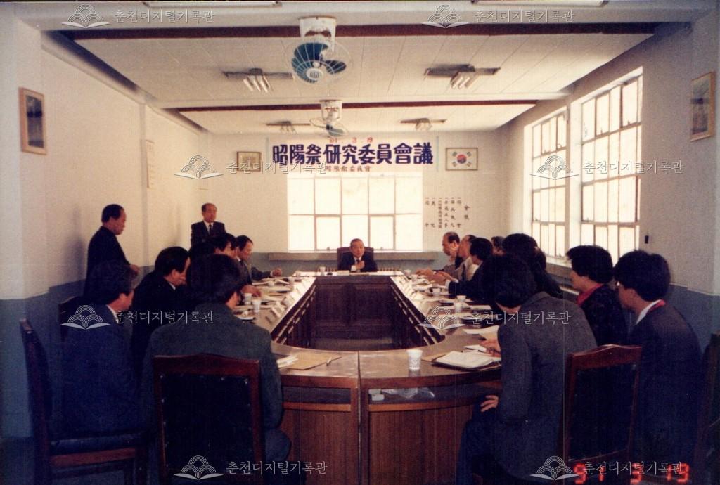 1991년 소양제 연구위원 회의 사진이다. 춘천문화원 김정명 10대 원장(사진 중앙)의 주재로 진행되었다.