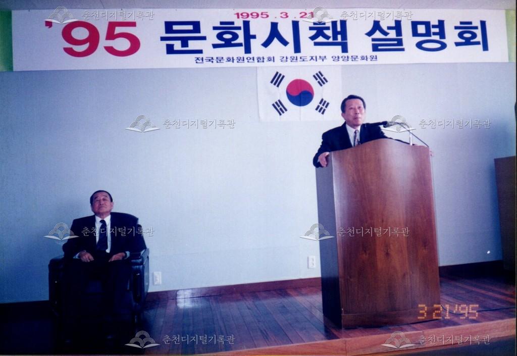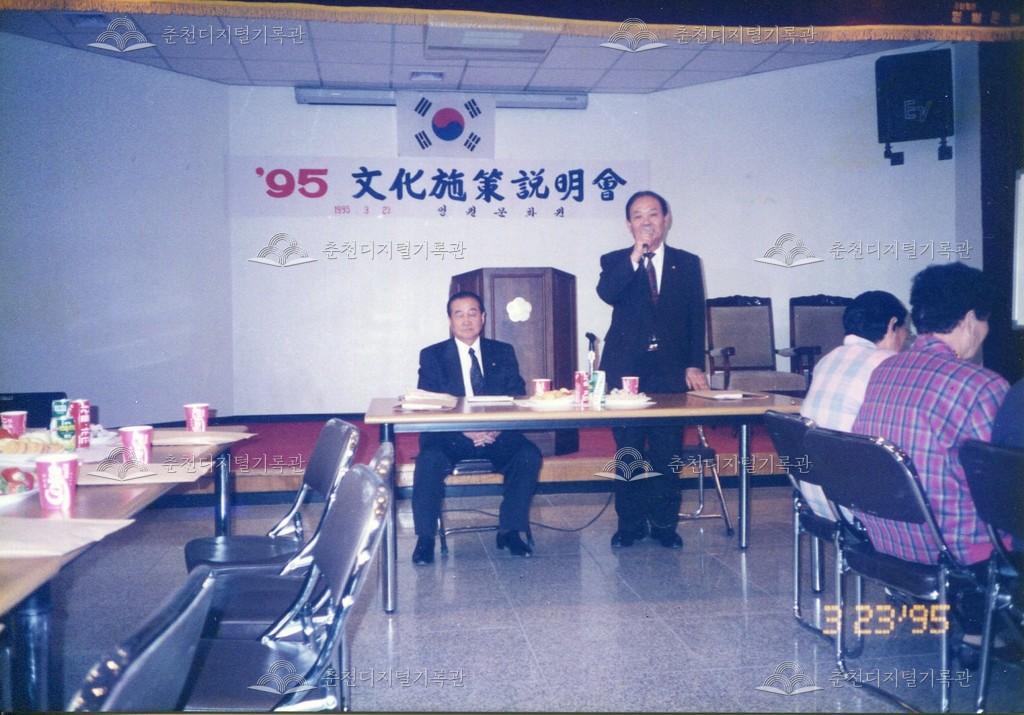 문화시책 설명회 사진 등록번호 00002351 생산일자 1995.03 생산지역 미상 생산자 춘천문화원 수집처 춘천문화원 소장자 춘천학연구소 내용 1995년 문화시책 설명회의 사진이다. 사진 순서대로 양양문화원(3월 21일), 강릉문화원(3월 21일), 동해문화원(3월 22일), 영월문화원(3월 23일), 인제문화원(3월 28일)에서 진행되었다. 자세히 보기 닫기 사용안내 비상업적 이용만 가능|©춘천디지털기록관 상업적 사용·수정·재배포는 저작권자 동의 필요 다운로드 목록보기