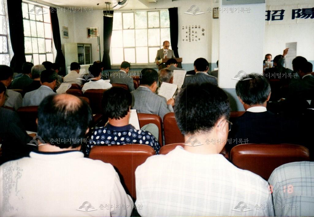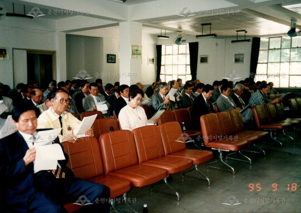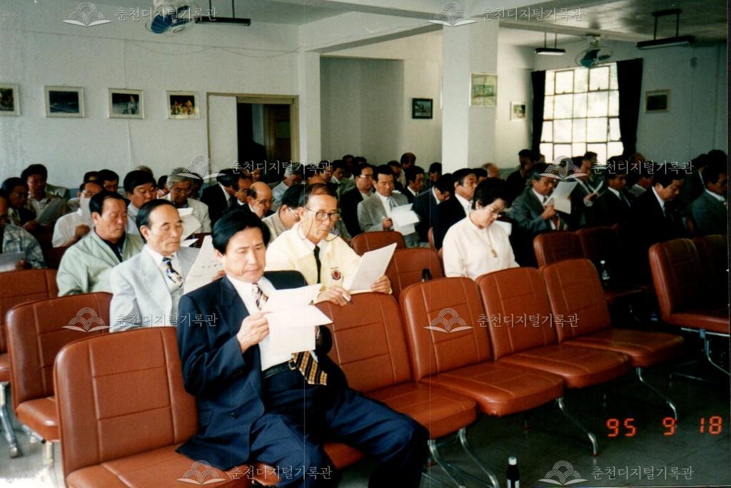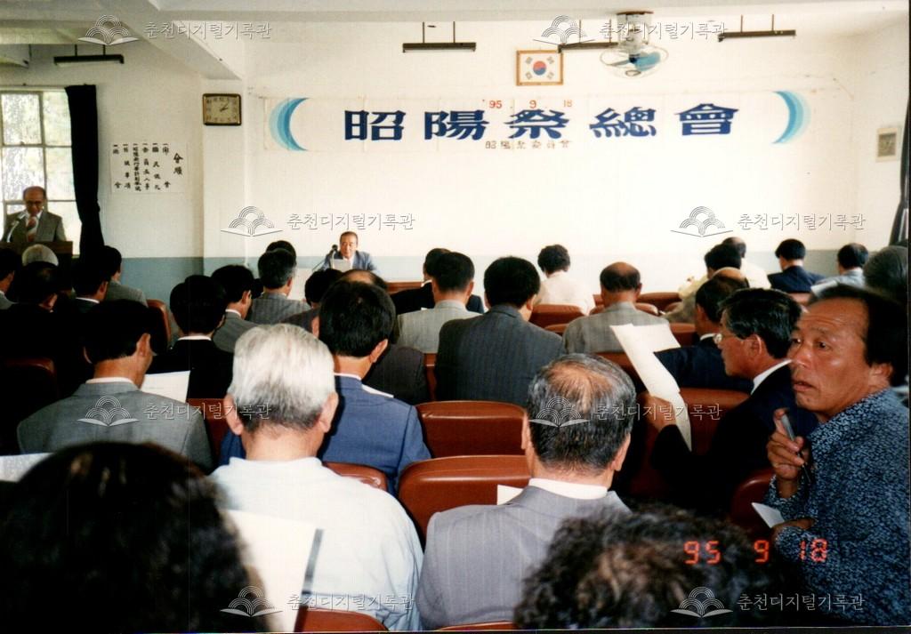 1995년 소양제 총회의 사진이다. 9월 18일 춘천문화원 내에서 진행했다. 총회를 참석하기 위해 문화원 주차장을 가득 채운 모습이 보인다. 봉의동 원사 당시의 사진이다.