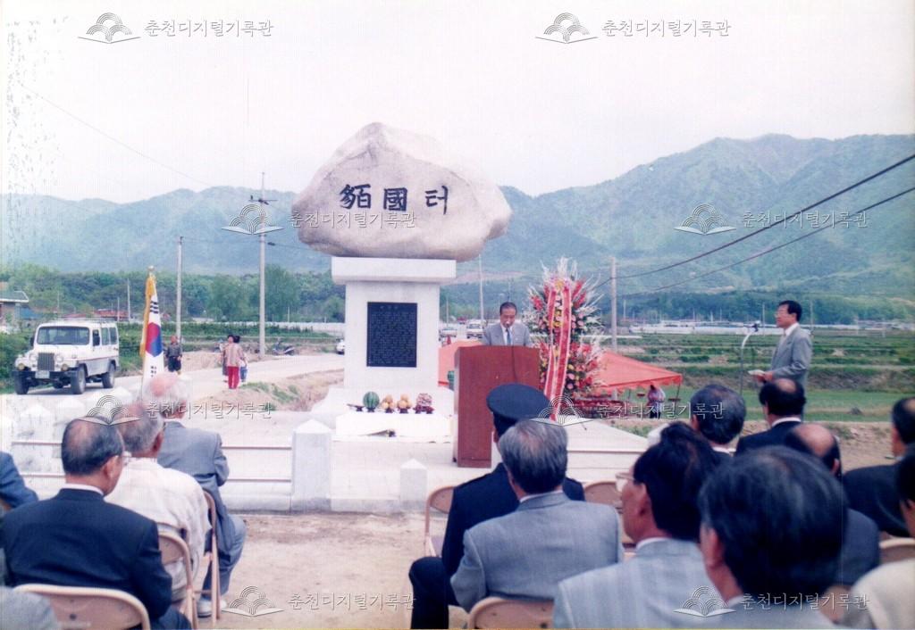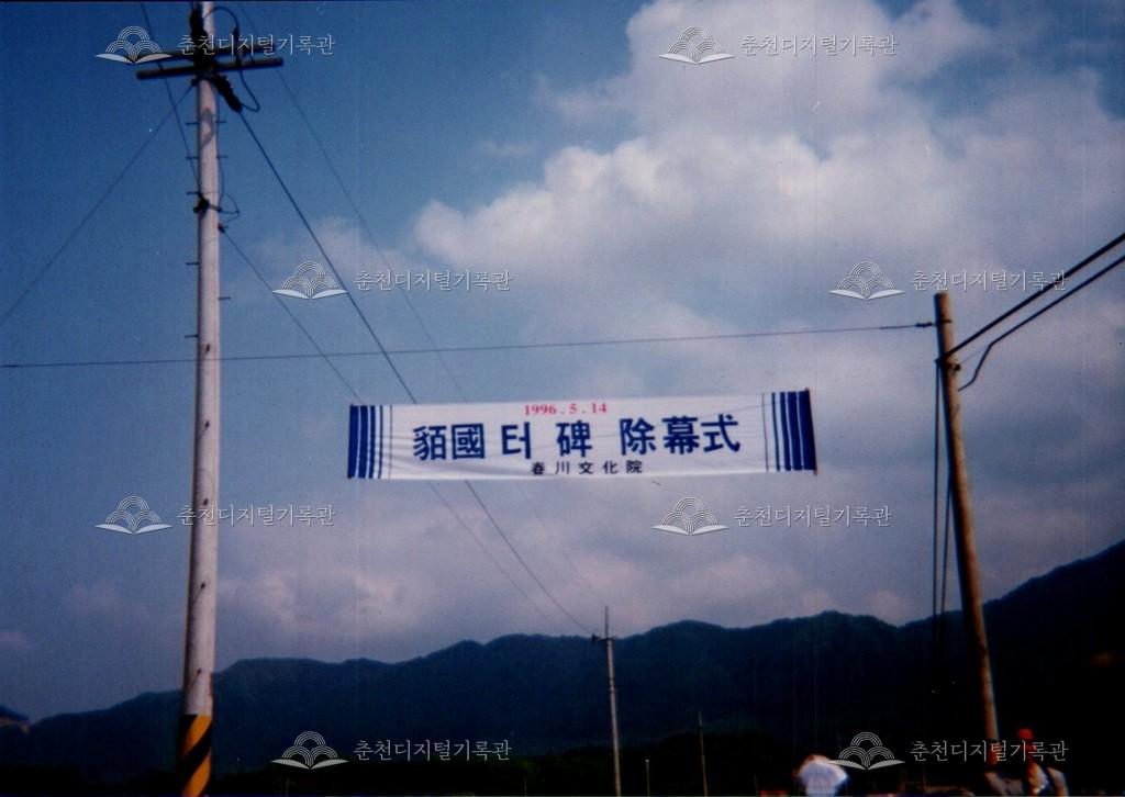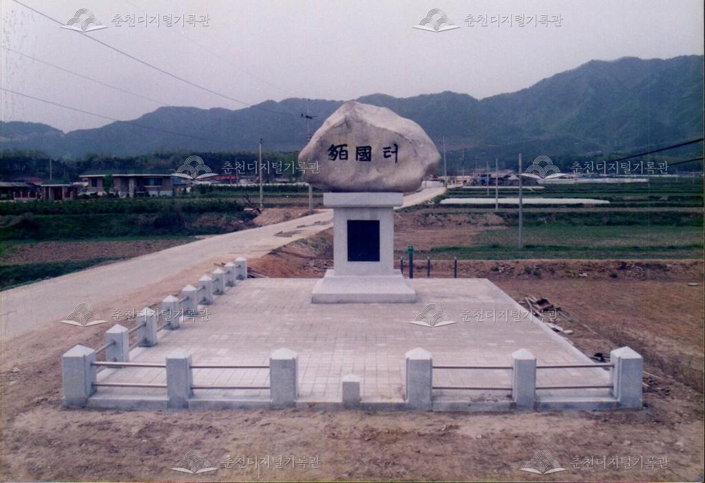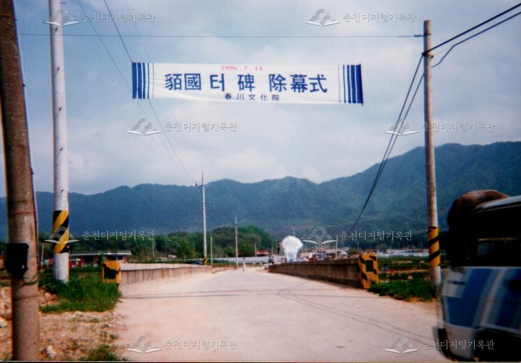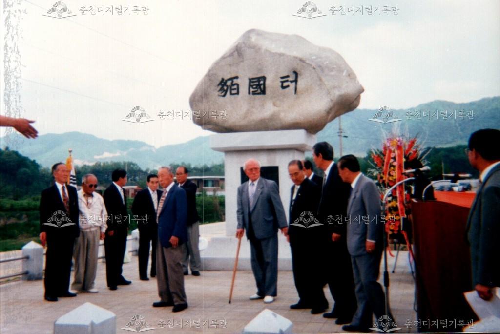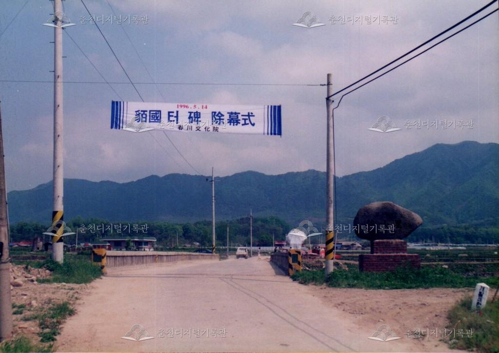 1996년 맥국터 비 제막식의 사진이다. 춘천문화원 주최, 춘천시 후원으로 신북읍 발산리에 건립되었다. 강원대학교 이운식 예술대학장이 시공 설계를 하고 홍창섭 강원도지사(7대 재임, 1959년 5월 13일~1960년 4월 30일)가 휘호를 썼다.