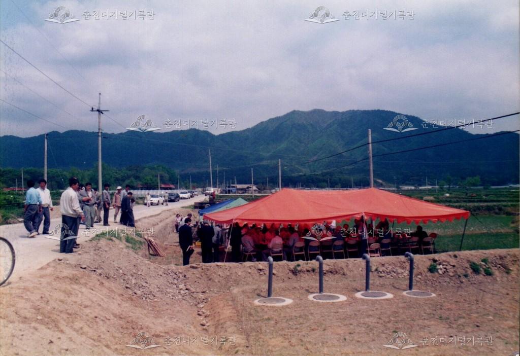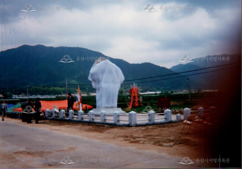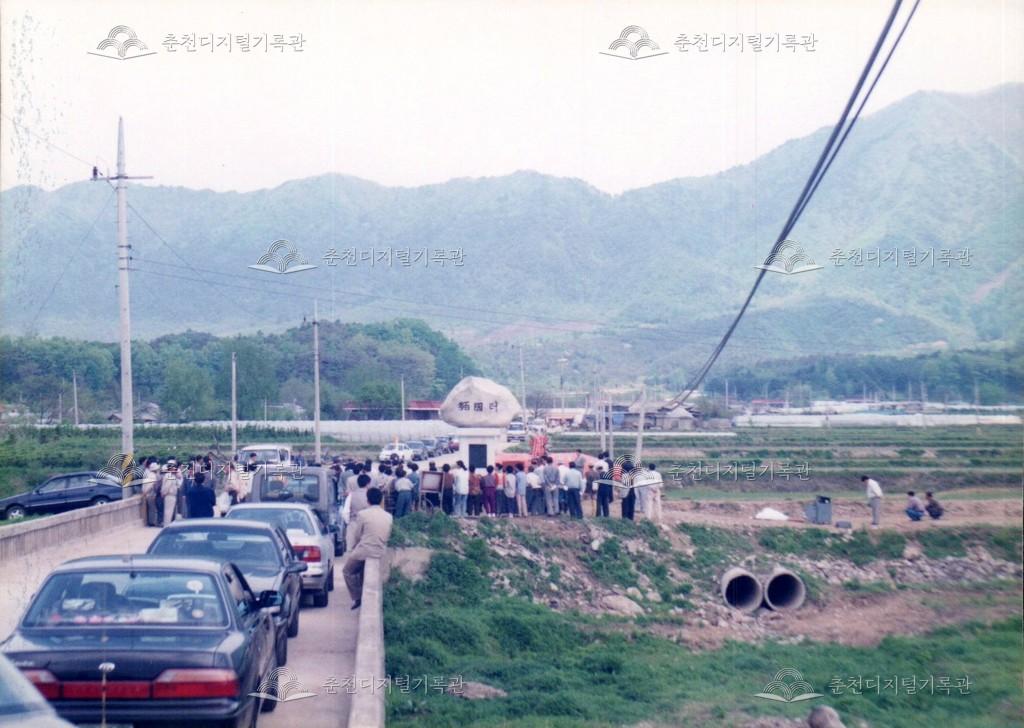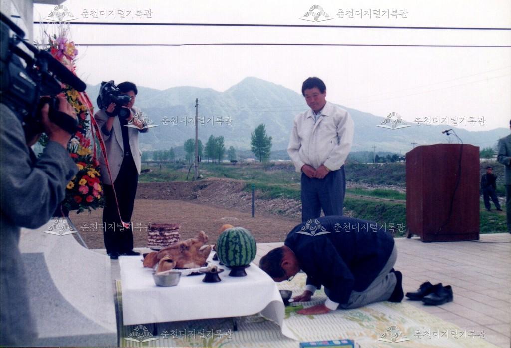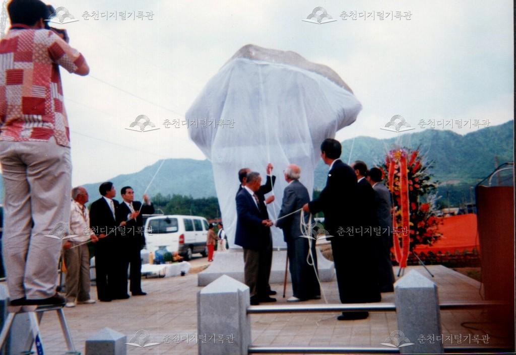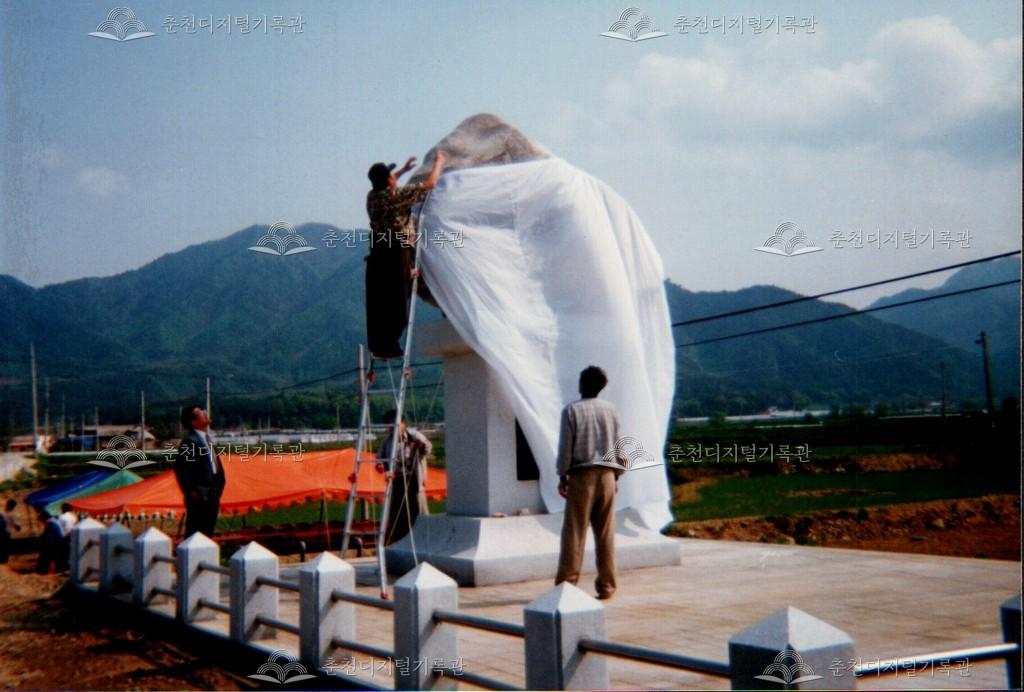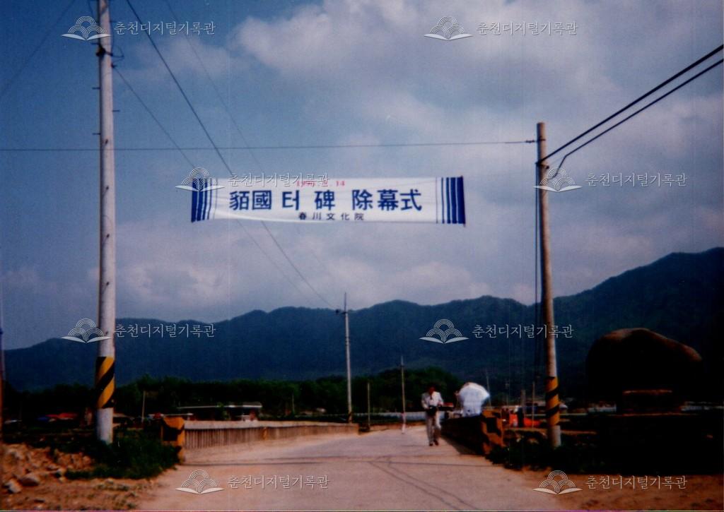 1996년 맥국터 비 제막식의 사진이다. 춘천문화원 주최, 춘천시 후원으로 신북읍 발산리에 건립되었다. 강원대학교 이운식 예술대학장이 시공 설계를 하고 홍창섭 강원도지사(7대 재임, 1959년 5월 13일~1960년 4월 30일)가 휘호를 썼다.