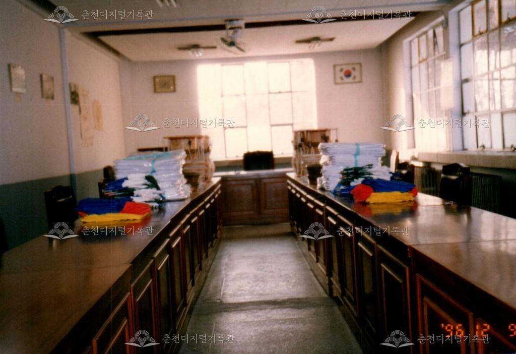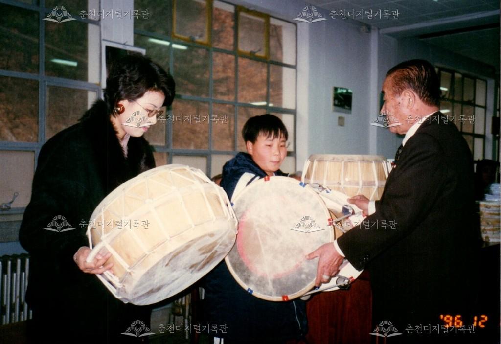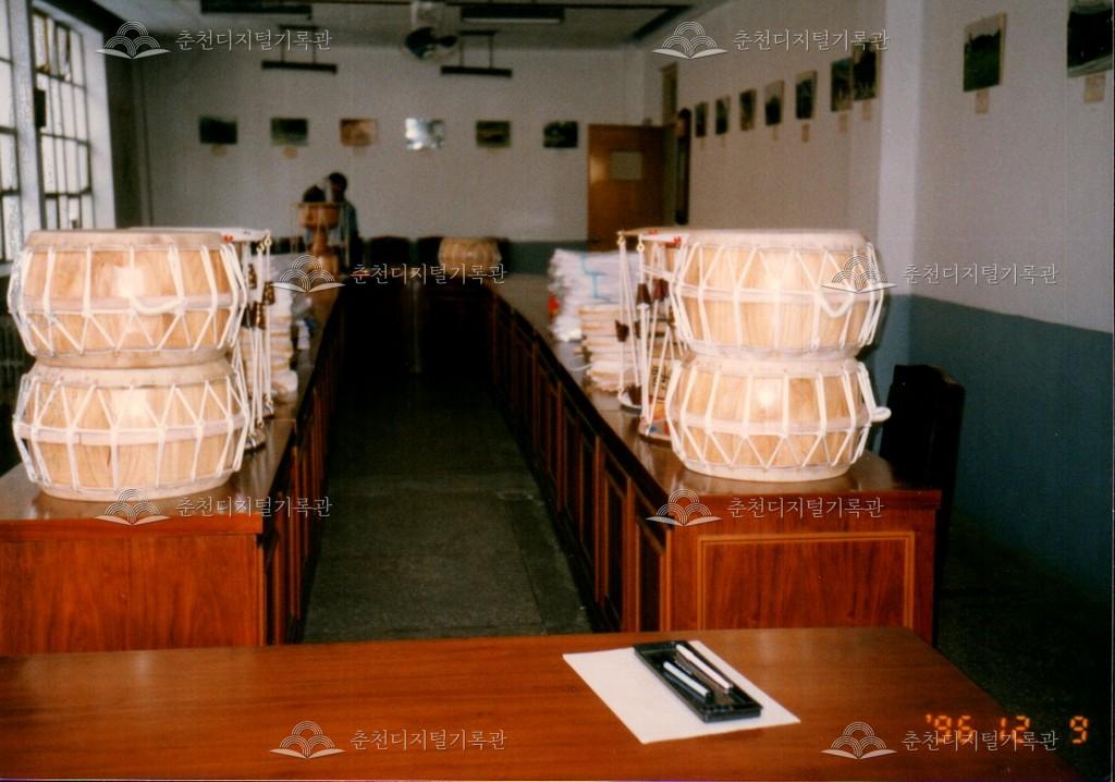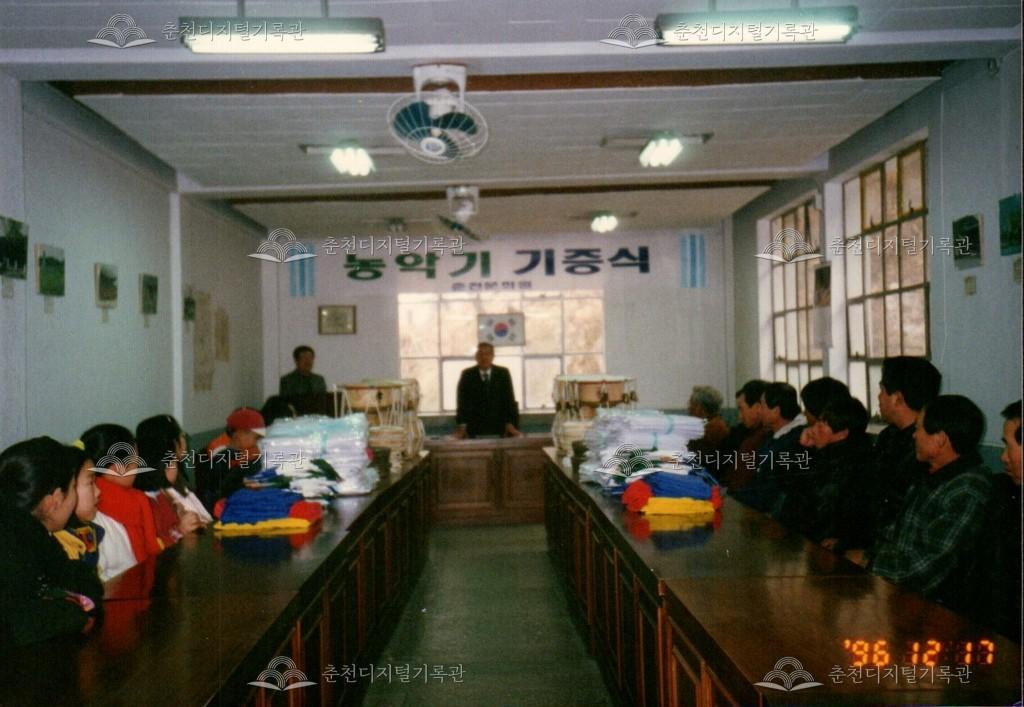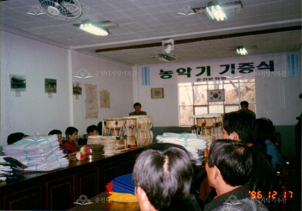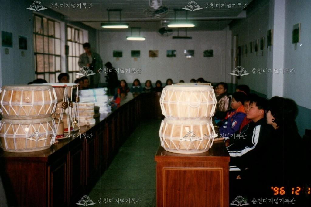1996년 농악기 기증식의 사진이다. 춘천문화원 주최로 문화원 내에서 진행되었다.