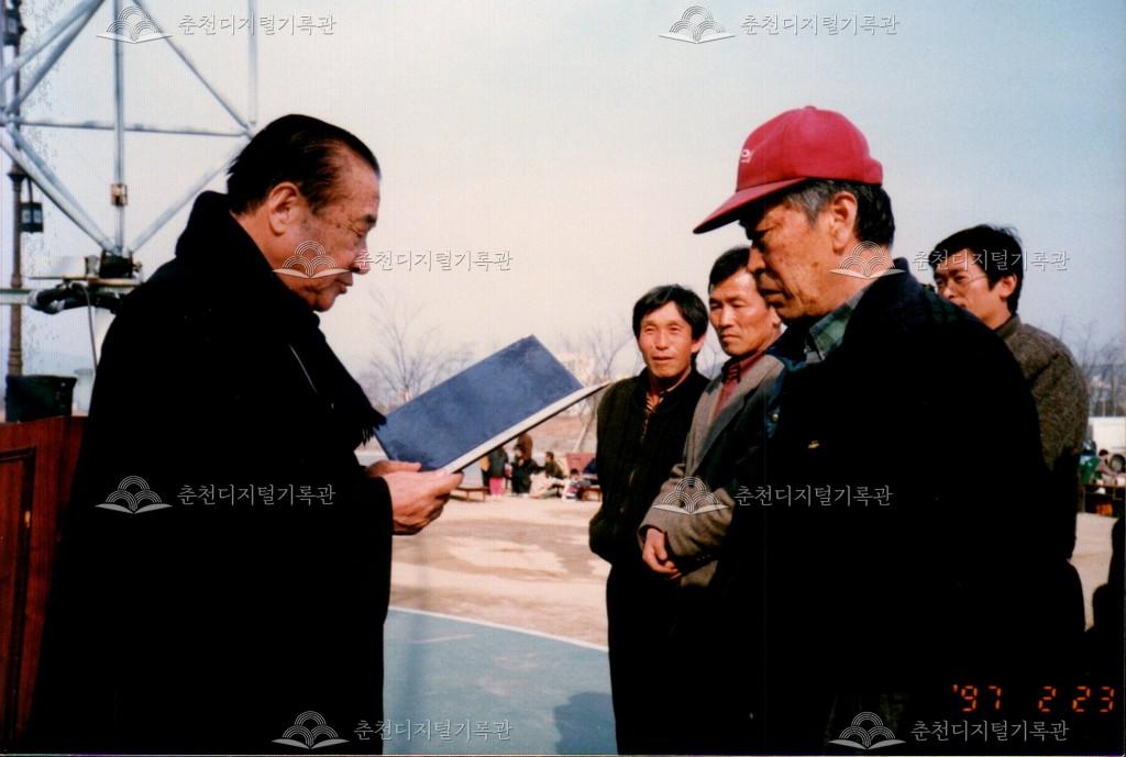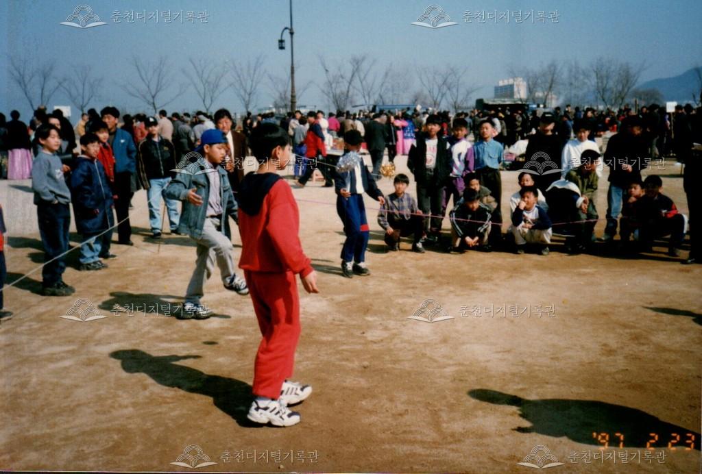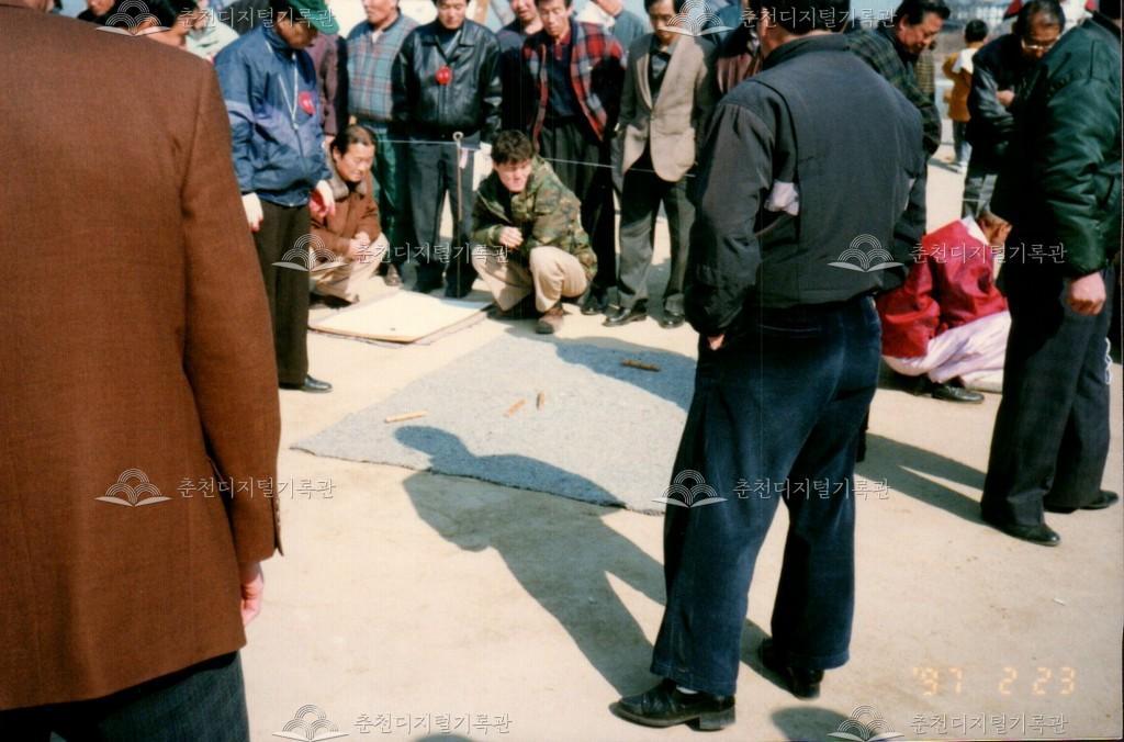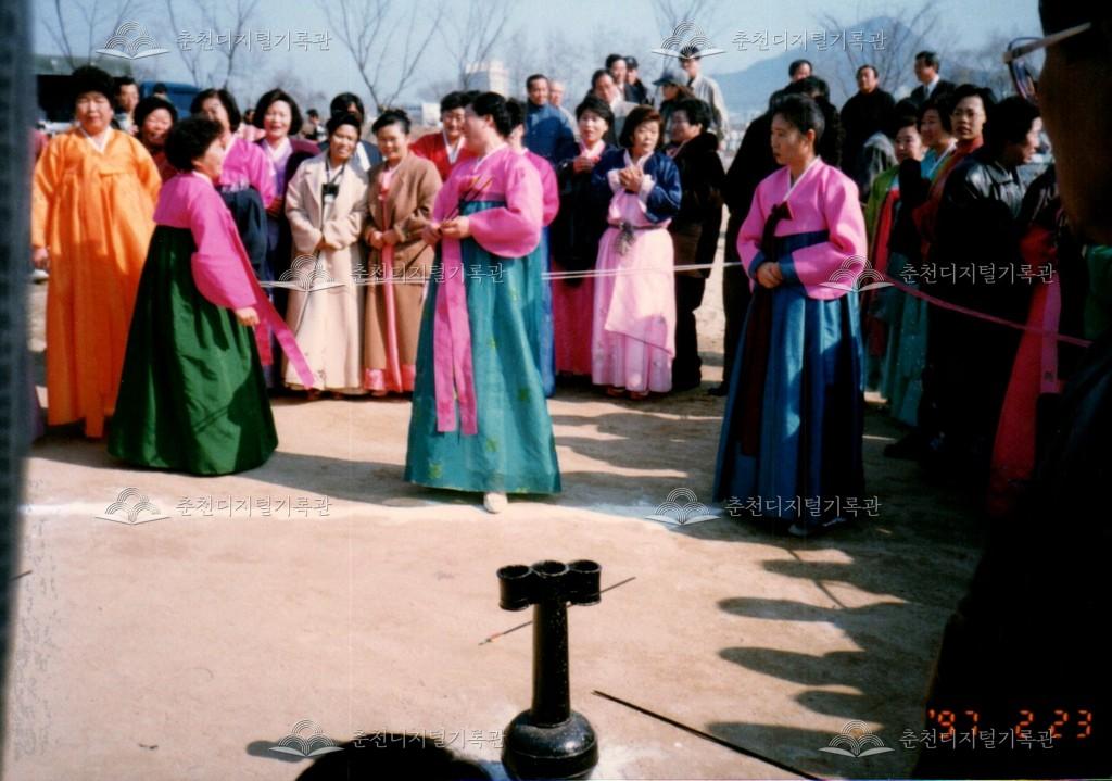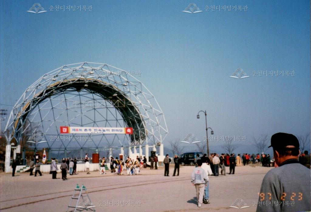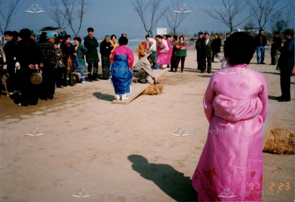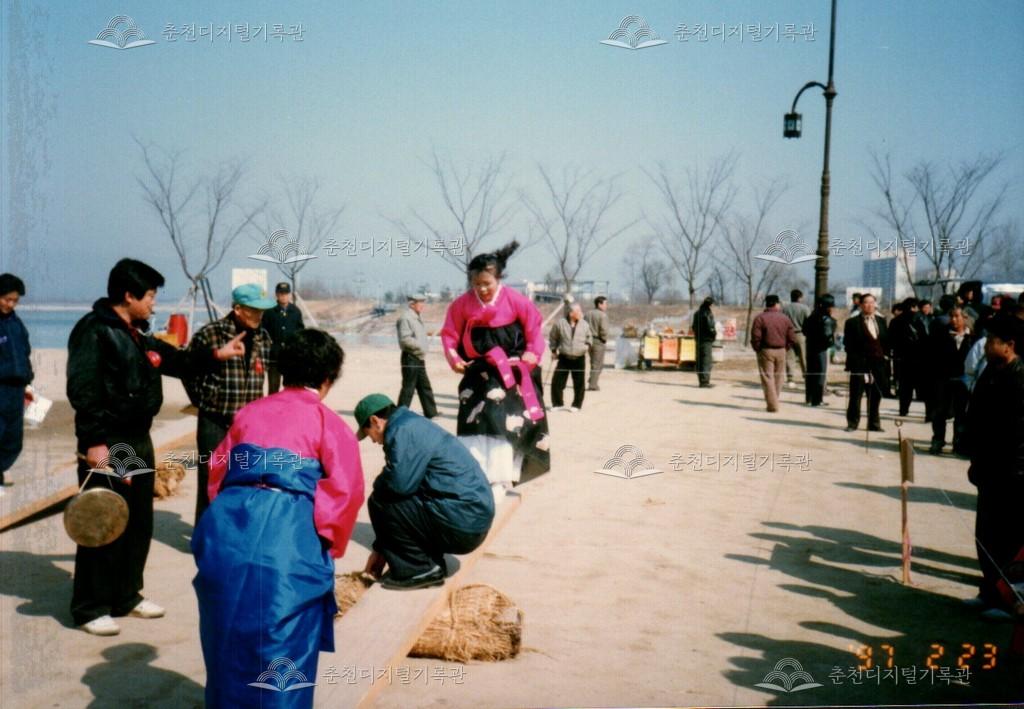 제8회 춘주민속놀이 한마당 사진 등록번호 00002385 생산일자 1997.02.23 생산지역 춘천시 삼천동 생산자 춘천문화원 수집처 춘천문화원 소장자 춘천학연구소 내용 1997년 제6회 춘주 민속놀이 한마당의 사진이다. 의암공원 야외음악당(현재 철거) 인근에서 진행되었다. 사용안내 비상업적 이용만 가능|©춘천디지털기록관 상업적 사용·수정·재배포는 저작권자 동의 필요 다운로드 목록보기