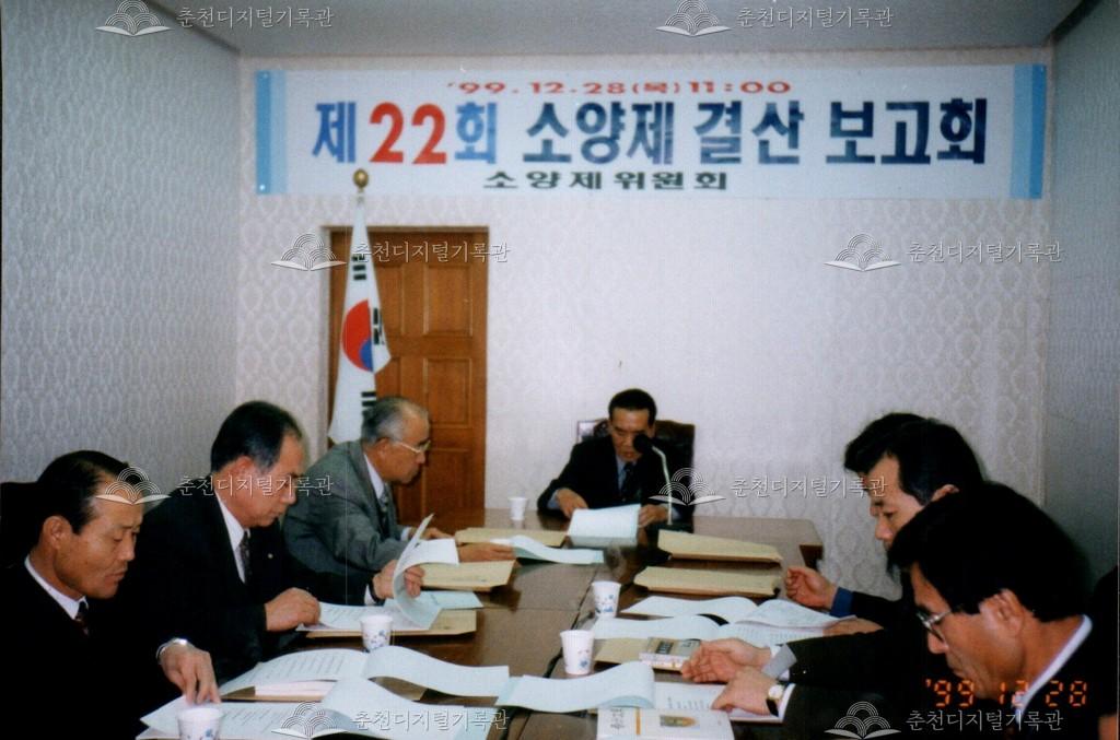 제22회 소양제 결산보고회 사진 등록번호 00002471 생산일자 1999.12.28 생산지역 춘천시 옥천동 생산자 춘천문화원 수집처 춘천문화원 소장자 춘천학연구소 내용 1999년 제22회 소양제 결산보고회의 사진이다. 사용안내 비상업적 이용만 가능|©춘천디지털기록관 상업적 사용·수정·재배포는 저작권자 동의 필요 다운로드 목록보기