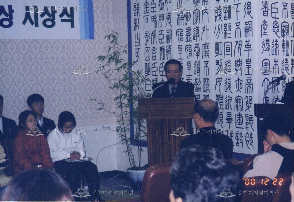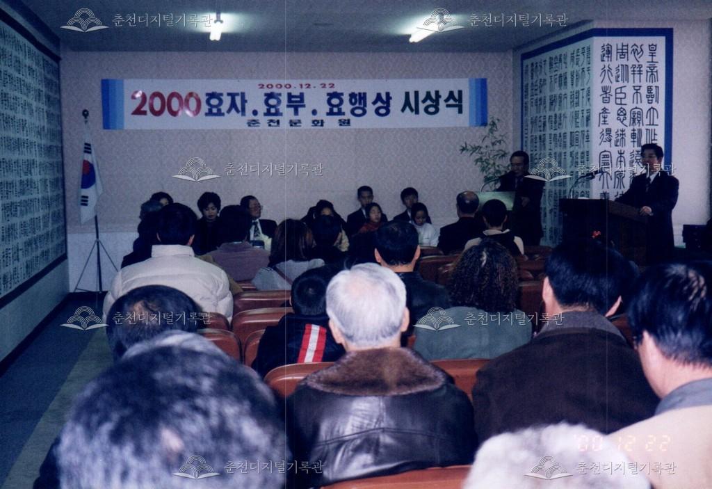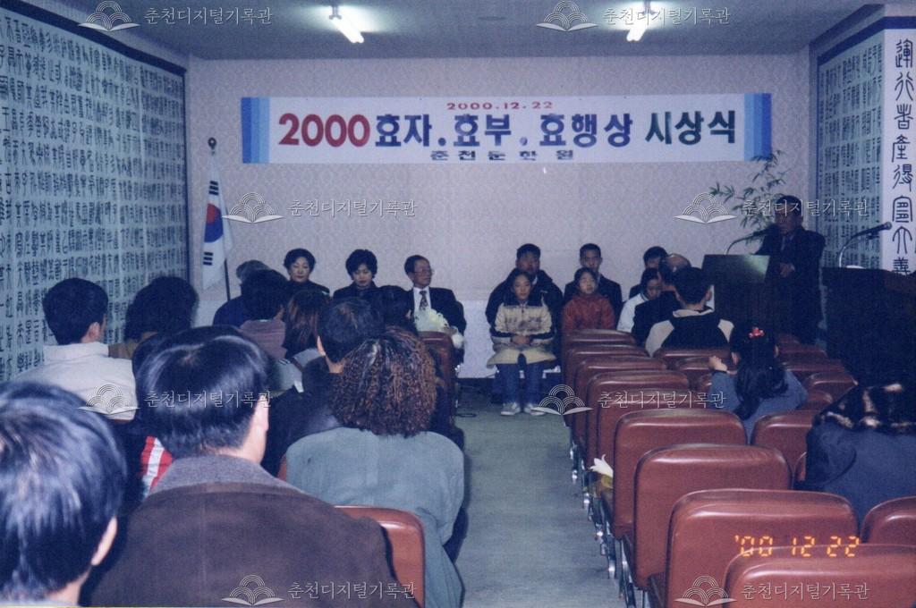 효자효부 효행상 시상식 사진 등록번호 00002500 생산일자 2000.12.22 생산지역 춘천시 옥천동 생산자 춘천문화원 수집처 춘천문화원 소장자 춘천학연구소 내용 2000년 효자효부 효행상 시상식의 사진이다. 사용안내 비상업적 이용만 가능|©춘천디지털기록관 상업적 사용·수정·재배포는 저작권자 동의 필요 다운로드 목록보기