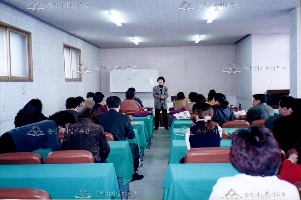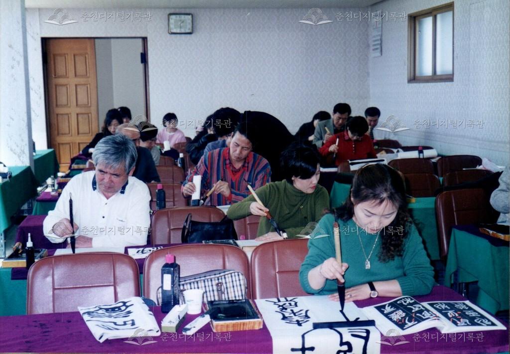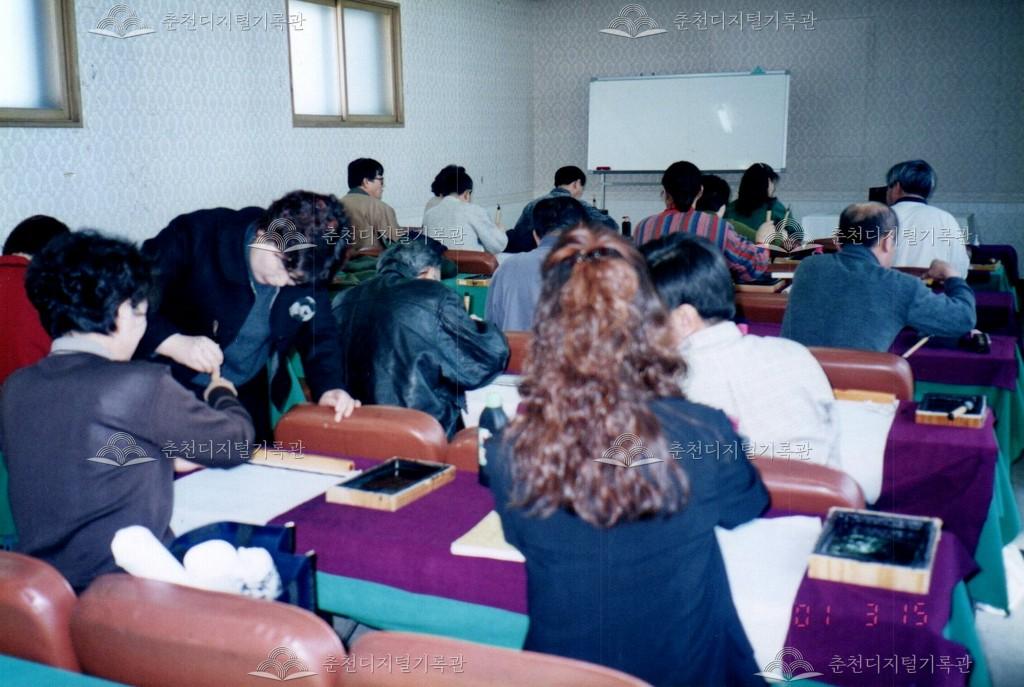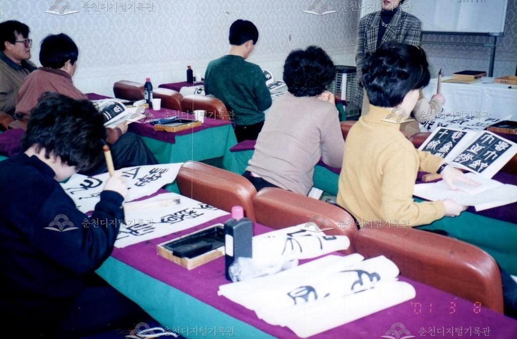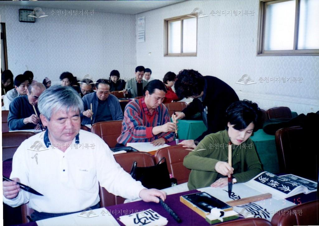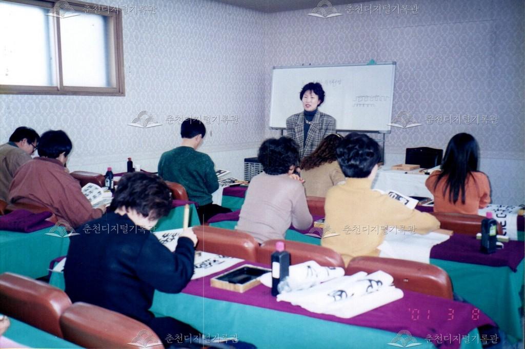 2000년 춘천문화원 문화학교의 서예 교실의 수업 모습이다. 3월 8일과 15일 수업 사진이 함께 있다.