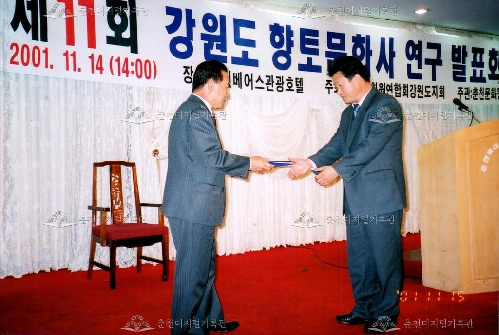 제11회 강원도 향토문화사 연구 발표회 사진 등록번호 00002519 생산일자 2001.11.14 생산지역 춘천시 삼천동 생산자 춘천문화원 수집처 춘천문화원 소장자 춘천학연구소 내용 2001년 제11회 강원도 향토문화사 연구 발표회의 사진이다. 춘천베어스관광호텔에서 개최되었다. 전국문화원연합회 고경재 강원도지회장 이임식 다음 순서로 진행되었다. 자세히 보기 닫기 사용안내 비상업적 이용만 가능|©춘천디지털기록관 상업적 사용·수정·재배포는 저작권자 동의 필요 다운로드 목록보기