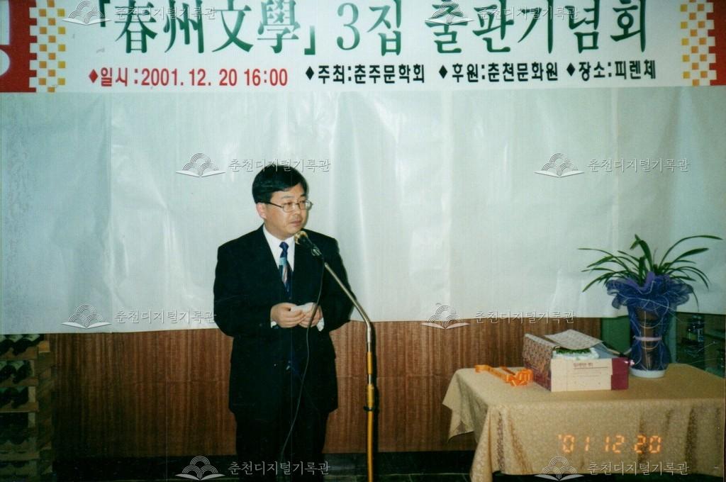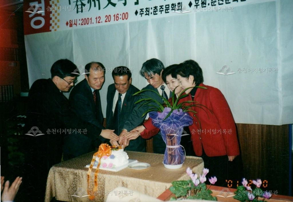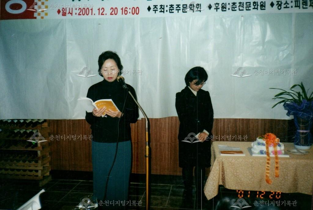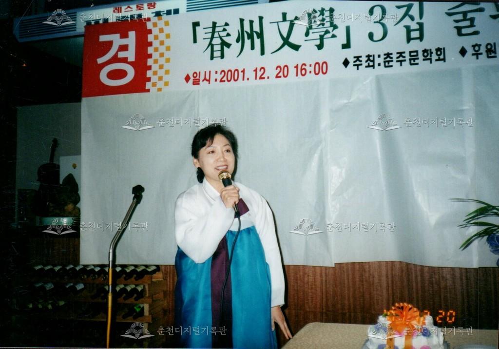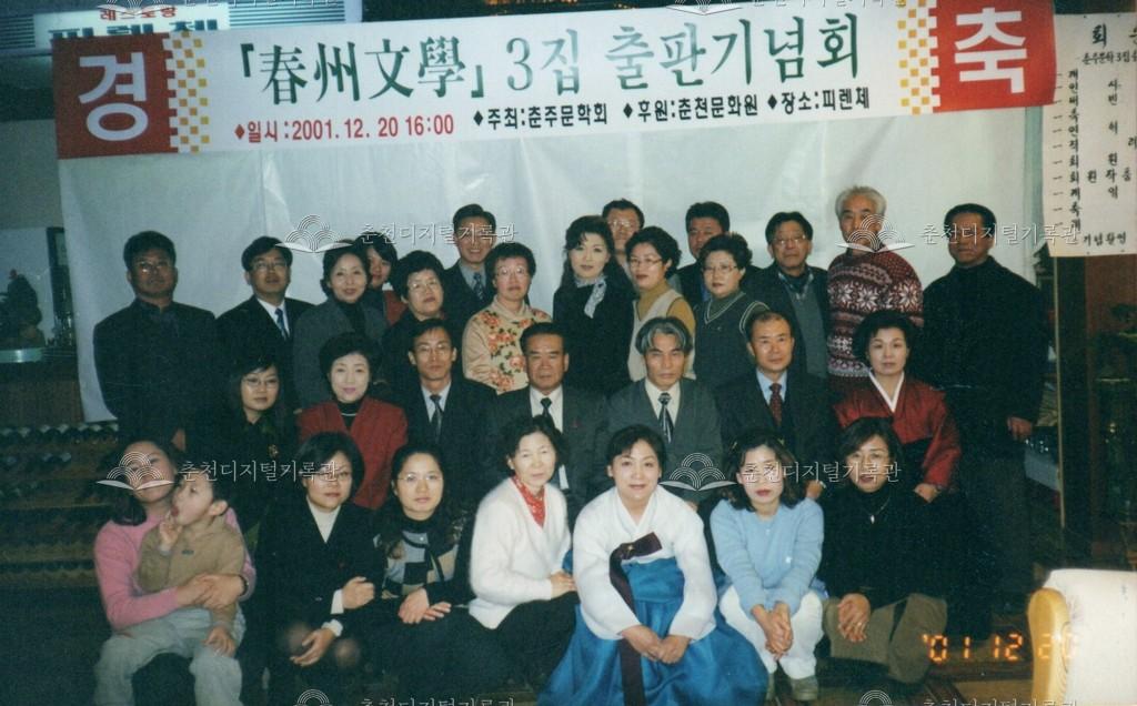 춘주문학 3집 출판기념회 사진 등록번호 00002525 생산일자 2001.12.20 생산지역 춘천시 생산자 춘천문화원 수집처 춘천문화원 소장자 춘천학연구소 내용 2001년 춘주문학 3집 출판기념회의 사진이다. 사용안내 비상업적 이용만 가능|©춘천디지털기록관 상업적 사용·수정·재배포는 저작권자 동의 필요 다운로드 목록보기