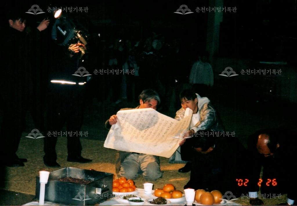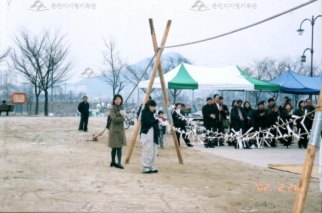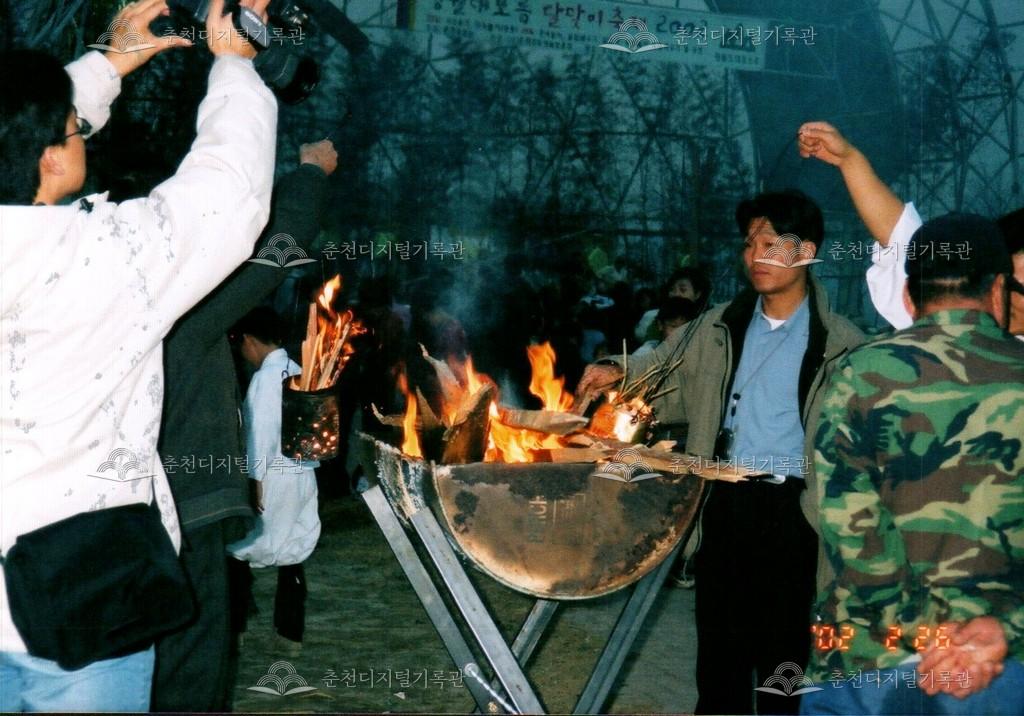 2002년 정월대보름 달맞이축제 사진 등록번호 00002532 생산일자 2002.02.26 생산지역 춘천시 삼천동 생산자 춘천문화원 수집처 춘천문화원 소장자 춘천학연구소 내용 2002년 정월대보름 달맞이축제 모습이다. 공지천 의암공원에서 다양한 행사가 진행되었다. 사용안내 비상업적 이용만 가능|©춘천디지털기록관 상업적 사용·수정·재배포는 저작권자 동의 필요 다운로드 목록보기