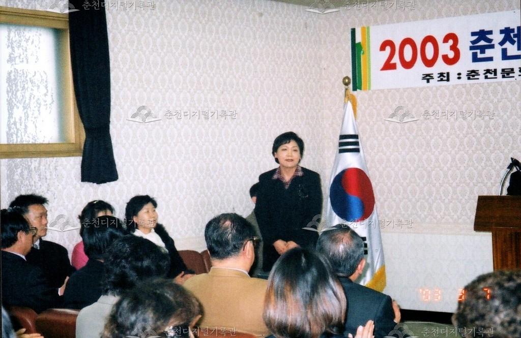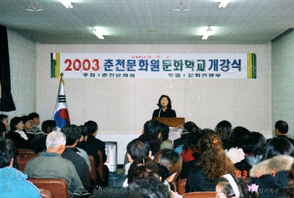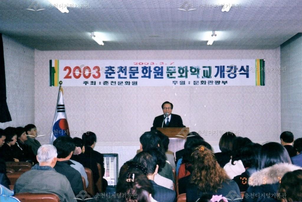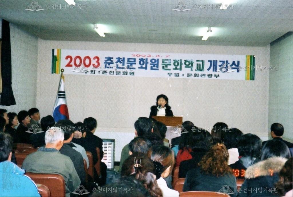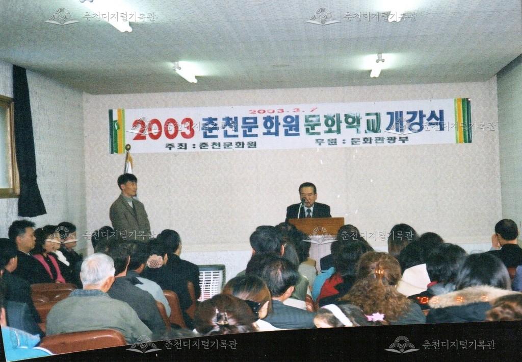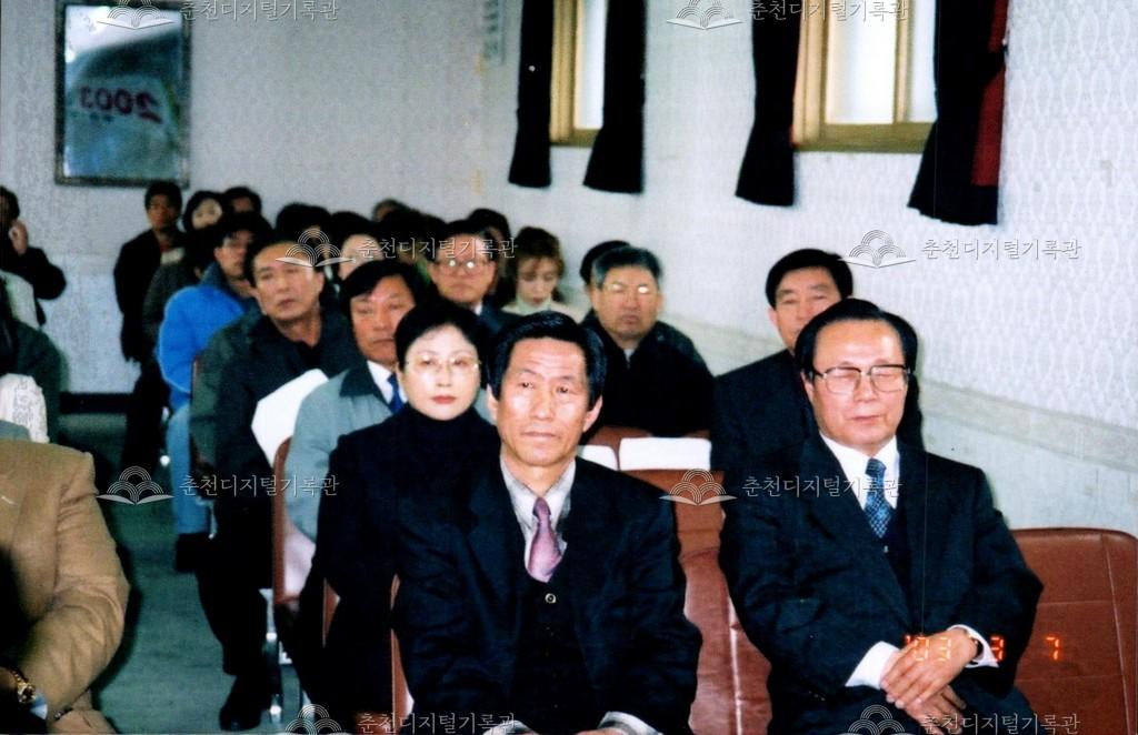 2003년 춘천문화원 문화학교 개강식 사진 등록번호 00002581 생산일자 2003.03.07 생산지역 춘천시 옥천동 생산자 춘천문화원 수집처 춘천문화원 소장자 춘천학연구소 내용 2003년 춘천문화원 문화학교 개강식의 사진이다. 사용안내 비상업적 이용만 가능|©춘천디지털기록관 상업적 사용·수정·재배포는 저작권자 동의 필요 다운로드 목록보기