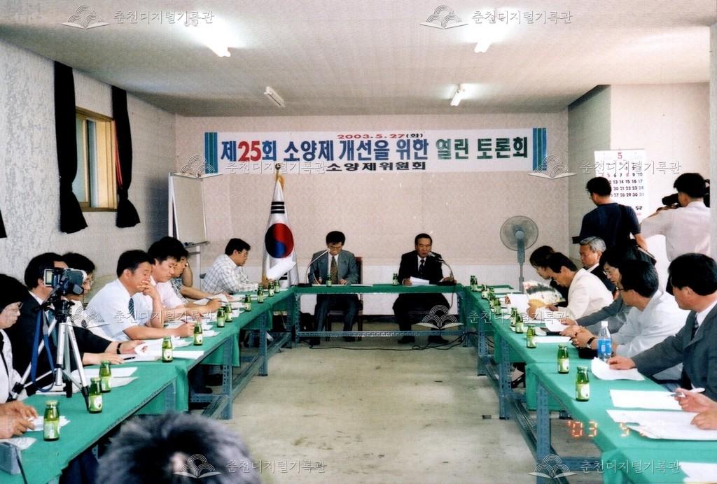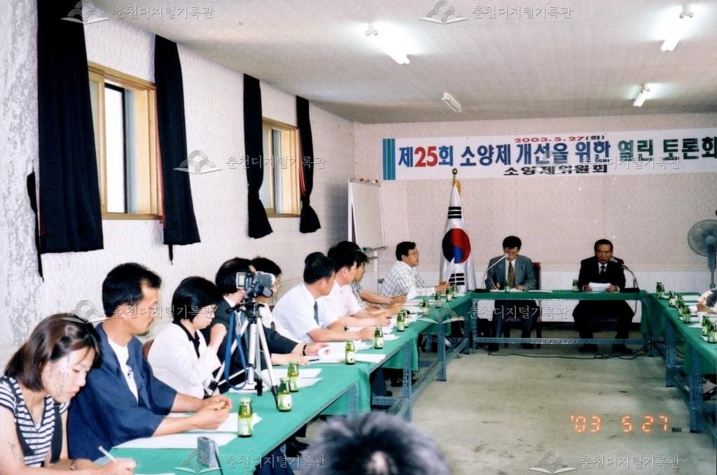 제25회 소양제 개선을 위한 열린 토론회 사진 등록번호 00002588 생산일자 2003.05.27 생산지역 춘천시 옥천동 생산자 춘천문화원 수집처 춘천문화원 소장자 춘천학연구소 내용 제25회 소양제 개선을 위한 열린 토론회의 사진이다. 소양제 위원회의 주최로 진행되었다. 해당 토론회에서 소양제의 명칭이 소양강문화제로 변경되었다. 자세히 보기 닫기 사용안내 비상업적 이용만 가능|©춘천디지털기록관 상업적 사용·수정·재배포는 저작권자 동의 필요 다운로드 목록보기