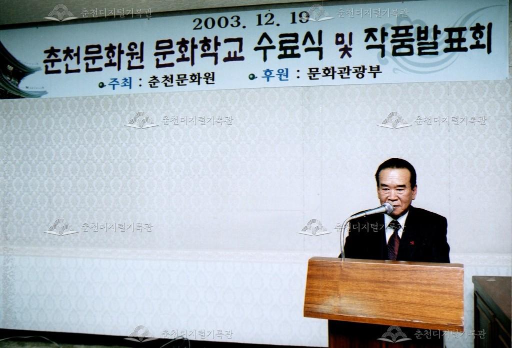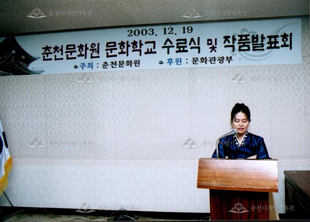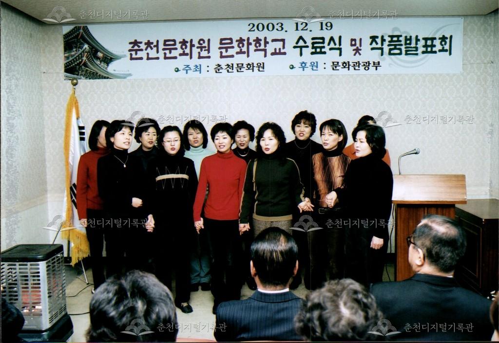 2003년 춘천문화원 문화학교 수료식과 작품발표회 사진이다. 이와 동시에 전시회가 12월 19일부터 21일까지 춘천문화원 대강당과 춘천예술마당 아트프라자 갤러리에서 진행되었다.