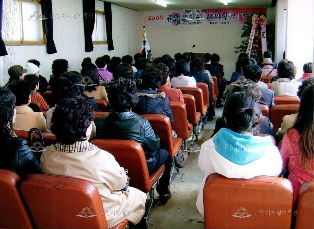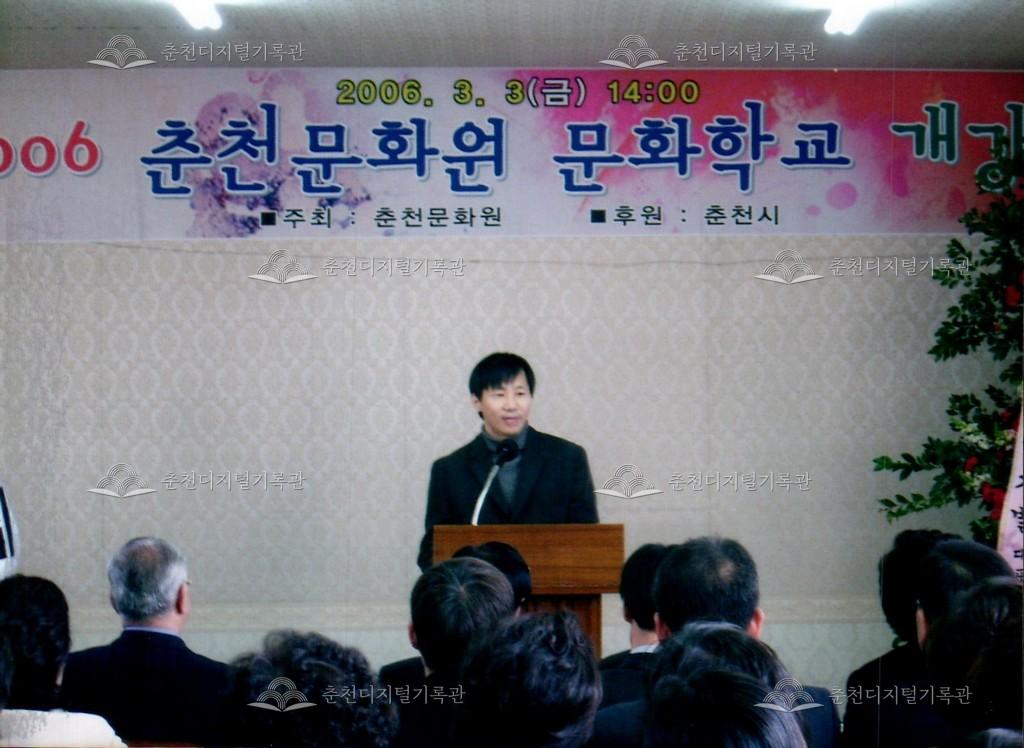 2006년 춘천문화원 문화학교 개강식 사진 등록번호 00002630 생산일자 2006.03.03 생산지역 춘천시 옥천동 생산자 춘천문화원 수집처 춘천문화원 소장자 춘천학연구소 내용 2006년 춘천문화원 문화학교 개강식 사진이다. 총 10과목이 1년 과정으로 3월 3일에 개강되었다. 사용안내 비상업적 이용만 가능|©춘천디지털기록관 상업적 사용·수정·재배포는 저작권자 동의 필요 다운로드 목록보기