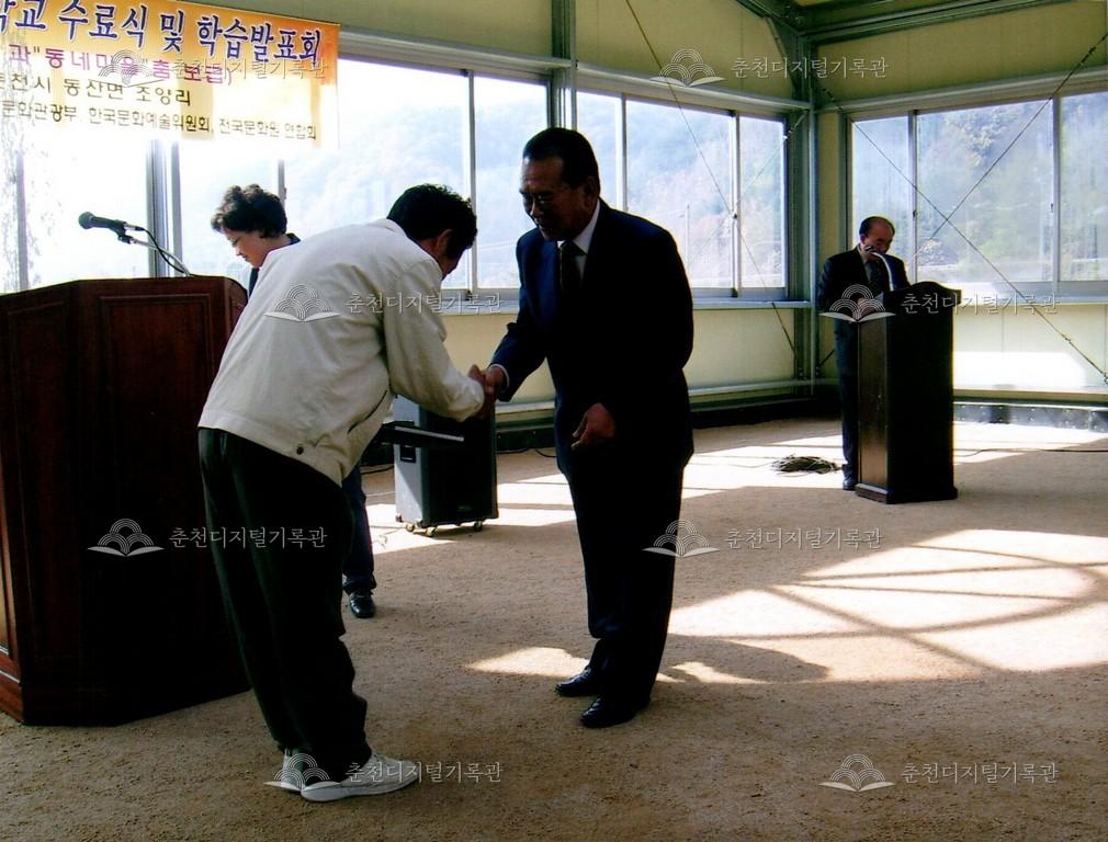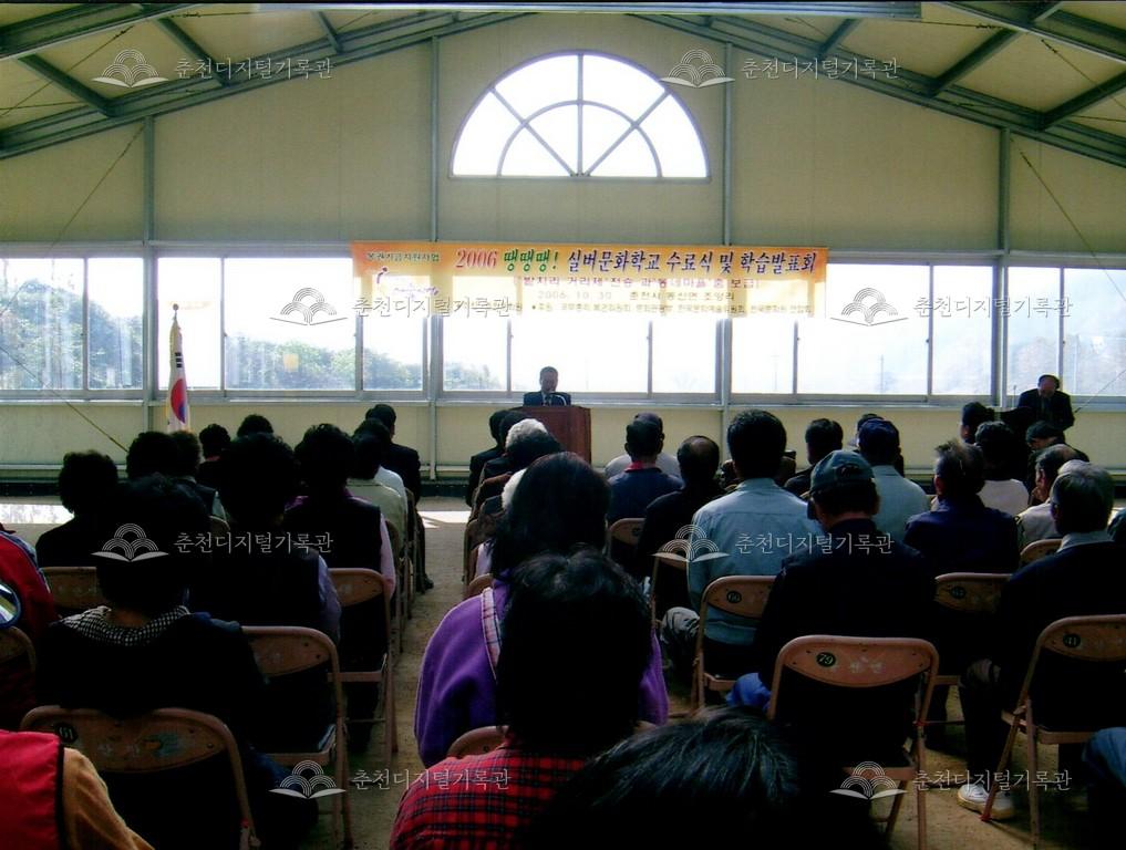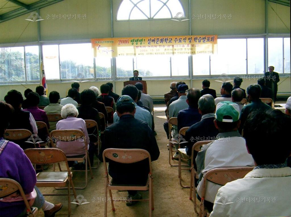 실버문화학교 수료식 및 학습발표회 사진 등록번호 00002649 생산일자 2006 생산지역 춘천시 동산면 조양리 생산자 춘천문화원 수집처 춘천문화원 소장자 춘천학연구소 내용 2006년 실버문화학교 수료식 및 학습발표회 사진이다. 밭치리 거리제 전승과 동네마을 춤 보급을 주제로 진행되었다. 사용안내 비상업적 이용만 가능|©춘천디지털기록관 상업적 사용·수정·재배포는 저작권자 동의 필요 다운로드 목록보기