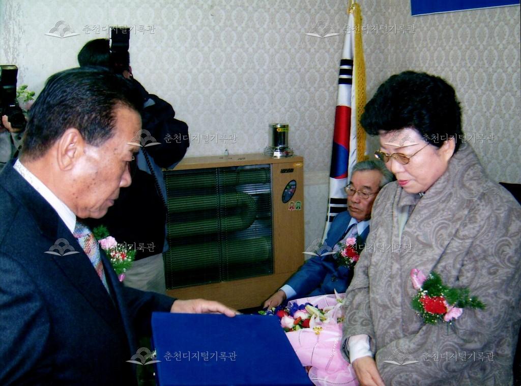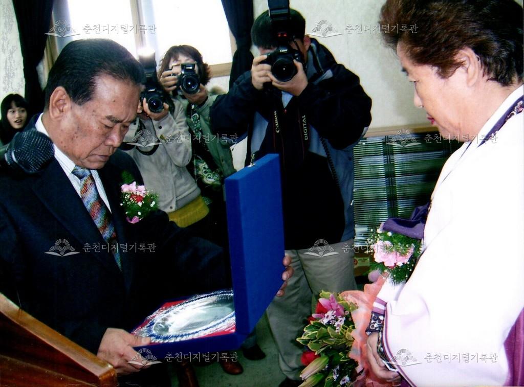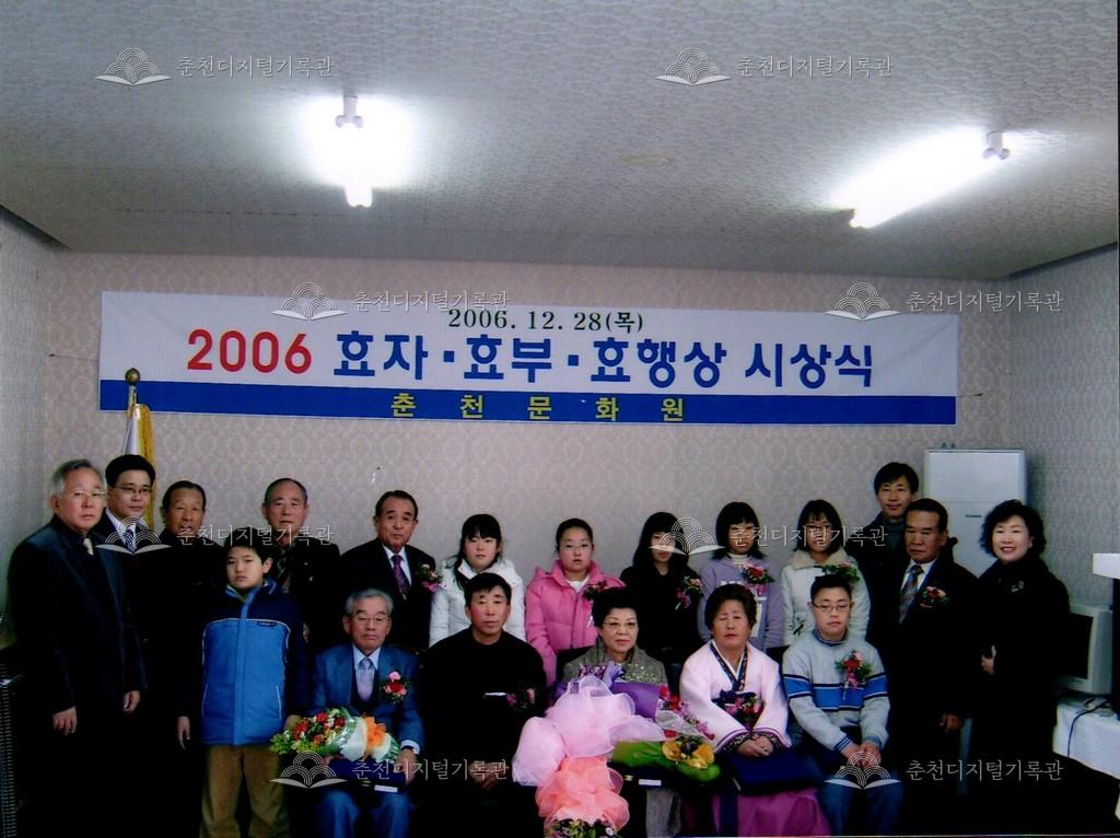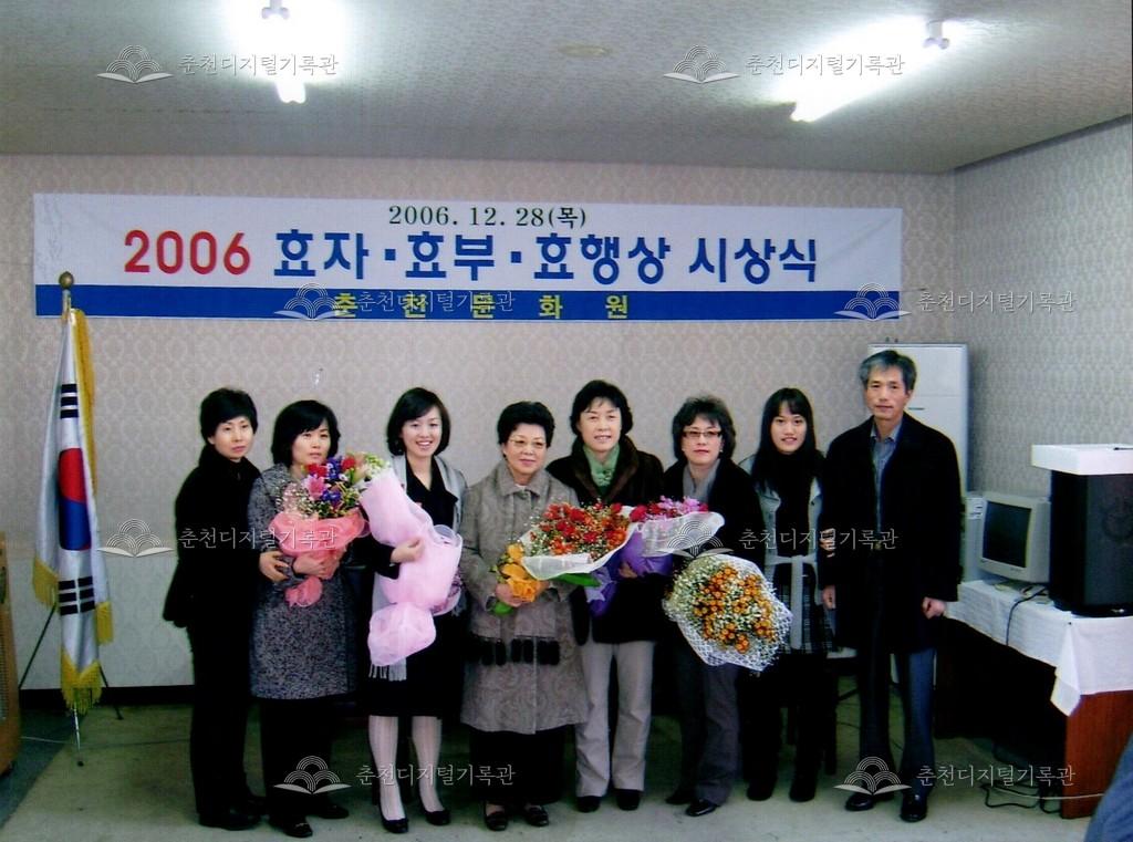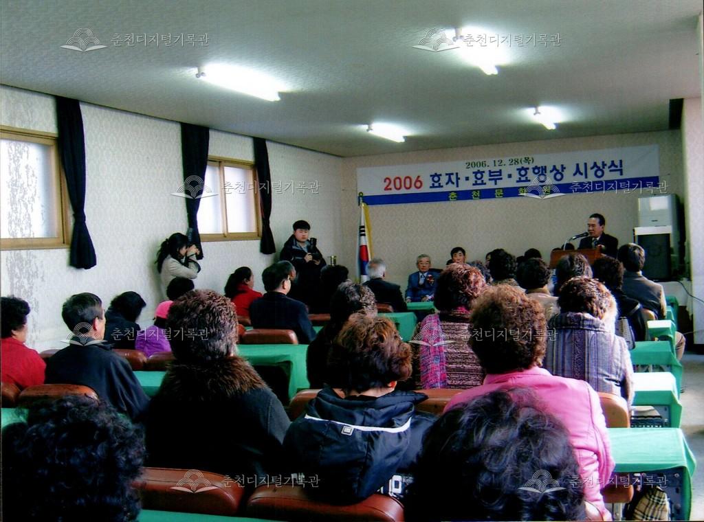효자효부 효행상 시상식 사진 등록번호 00002660 생산일자 2006.12.28 생산지역 춘천시 옥천동 생산자 춘천문화원 수집처 춘천문화원 소장자 춘천학연구소 내용 2006년 효자효부 효행상 시상식의 사진이다. 사용안내 비상업적 이용만 가능|©춘천디지털기록관 상업적 사용·수정·재배포는 저작권자 동의 필요 다운로드 목록보기