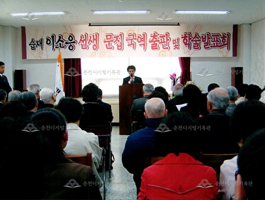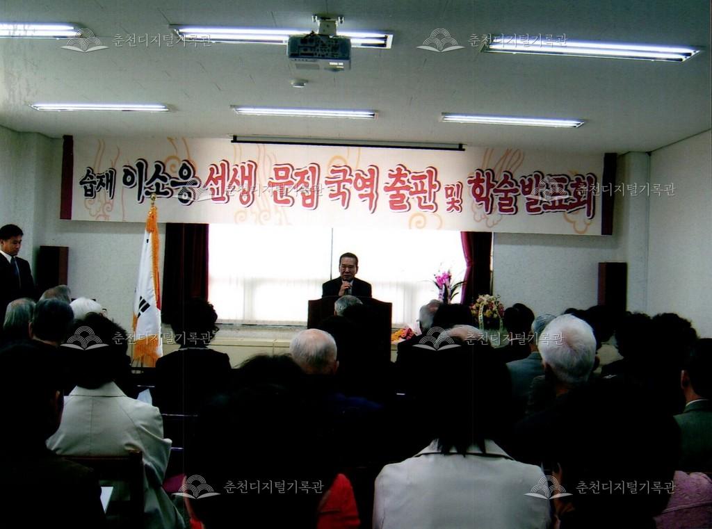 습재 이소응 선생 문집 국역 출판 및 학술발표회 사진 등록번호 00002690 생산일자 2007 생산지역 춘천시 생산자 춘천문화원 수집처 춘천문화원 소장자 춘천학연구소 내용 2007년 습재 이소응 선생 문집 국역 출판 및 학술발표회 사진이다. 사용안내 비상업적 이용만 가능|©춘천디지털기록관 상업적 사용·수정·재배포는 저작권자 동의 필요 다운로드 목록보기