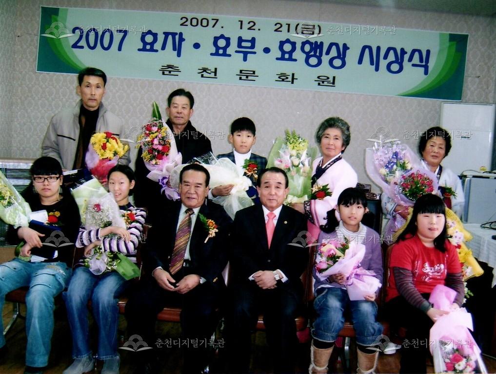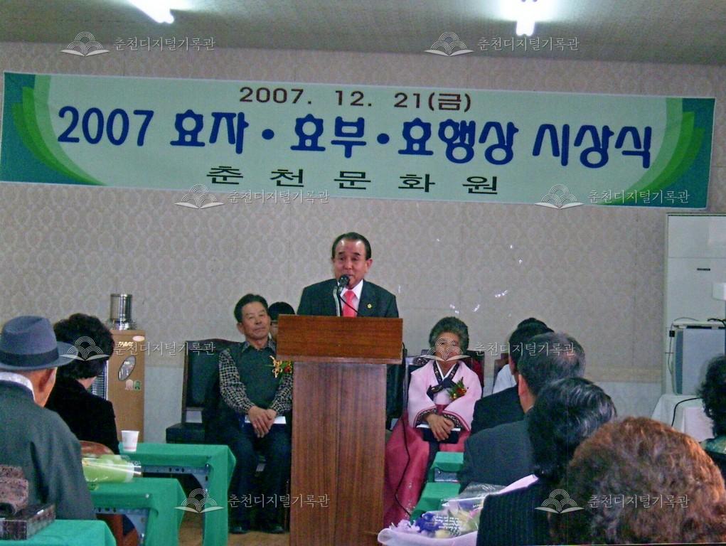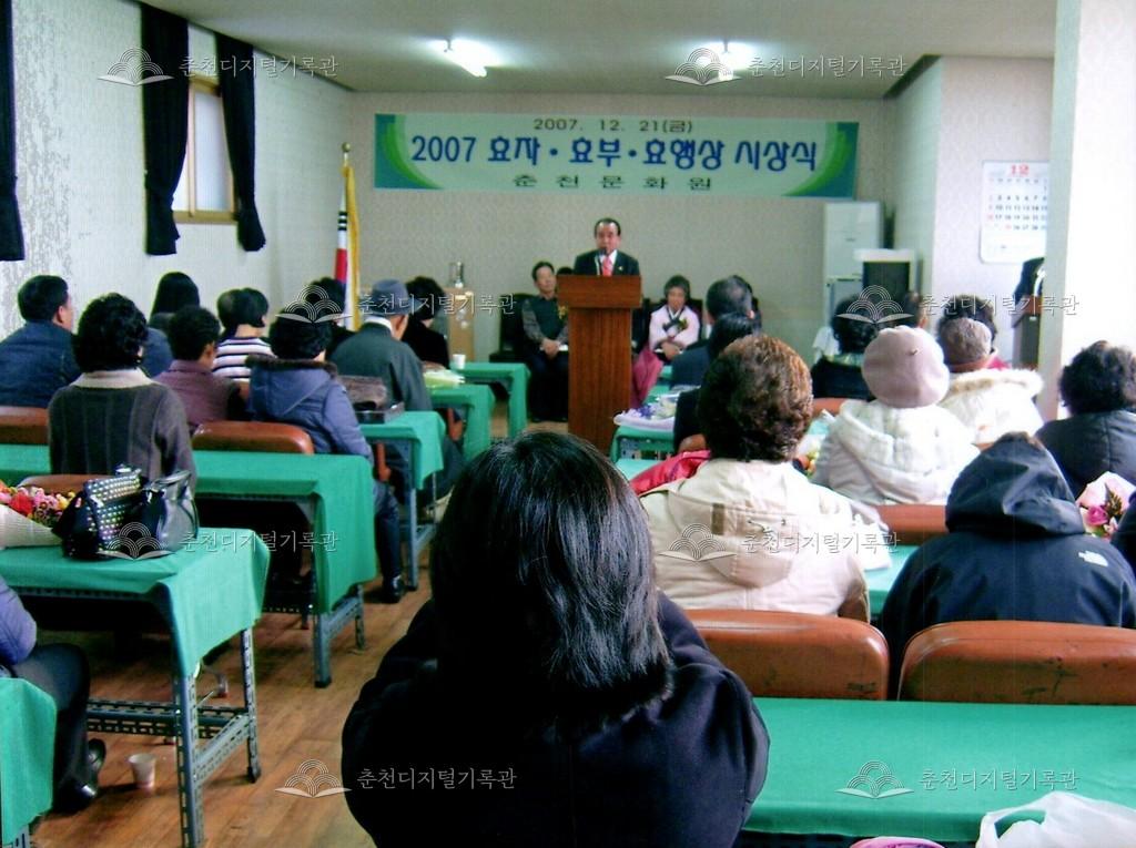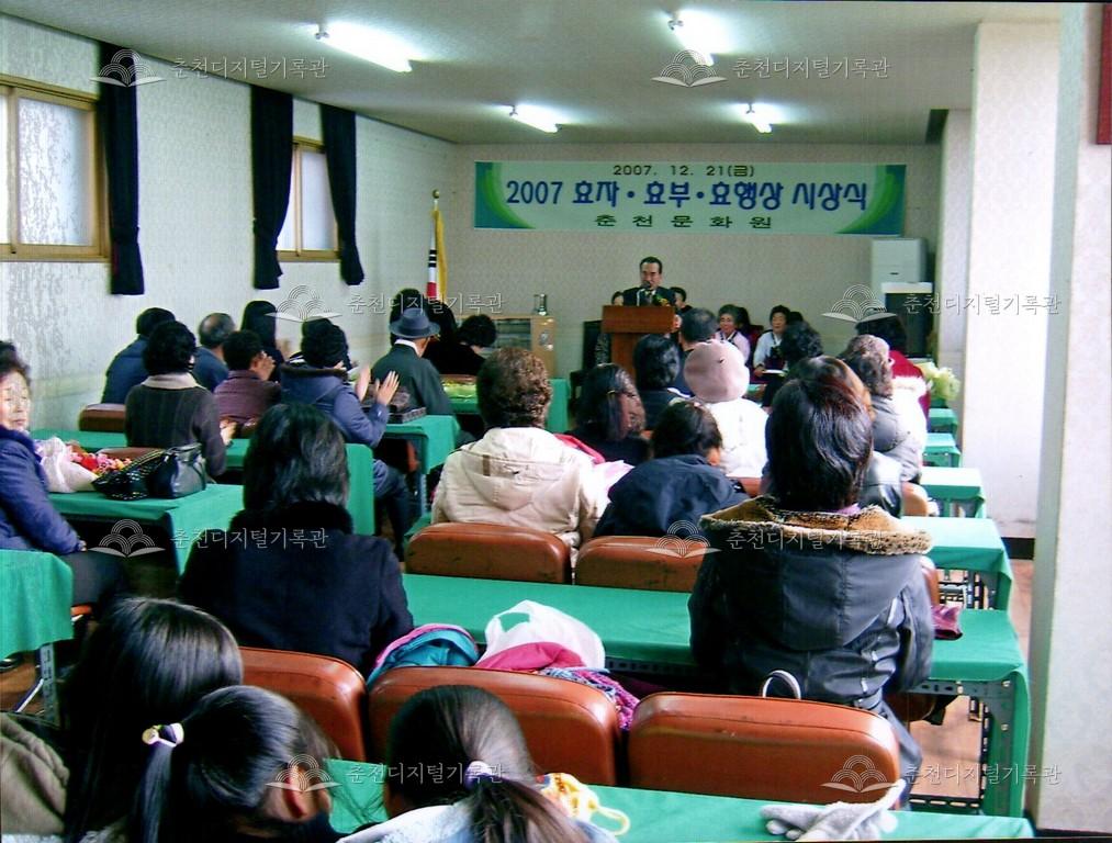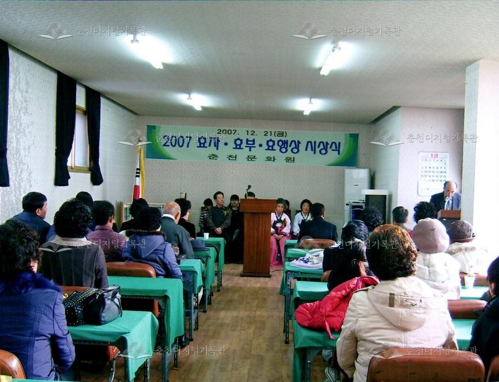 효자효부 효행상 시상식 사진 등록번호 00002697 생산일자 2007.12.21 생산지역 춘천시 옥천동 생산자 춘천문화원 수집처 춘천문화원 소장자 춘천학연구소 내용 2007년 효자효부 효행상 시상식 사진이다. 사용안내 비상업적 이용만 가능|©춘천디지털기록관 상업적 사용·수정·재배포는 저작권자 동의 필요 다운로드 목록보기