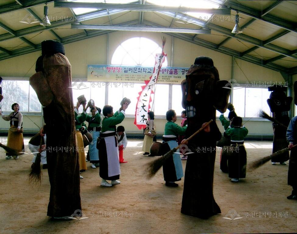 2007년 실버문화학교 동네마을춤 공연 사진 등록번호 00002701 생산일자 2007.01.24 생산지역 춘천시 동산면 조양리 생산자 춘천문화원 수집처 춘천문화원 소장자 춘천학연구소 내용 2007년 1월 24일부터 28일까지 조양리 게이트볼장에서 열린 실버문화학교 동네마을춤 공연 사진이다. 사북면, 오탄리, 고성리 주민을 초정하여 행사를 진행했다. 자세히 보기 닫기 사용안내 비상업적 이용만 가능|©춘천디지털기록관 상업적 사용·수정·재배포는 저작권자 동의 필요 다운로드 목록보기