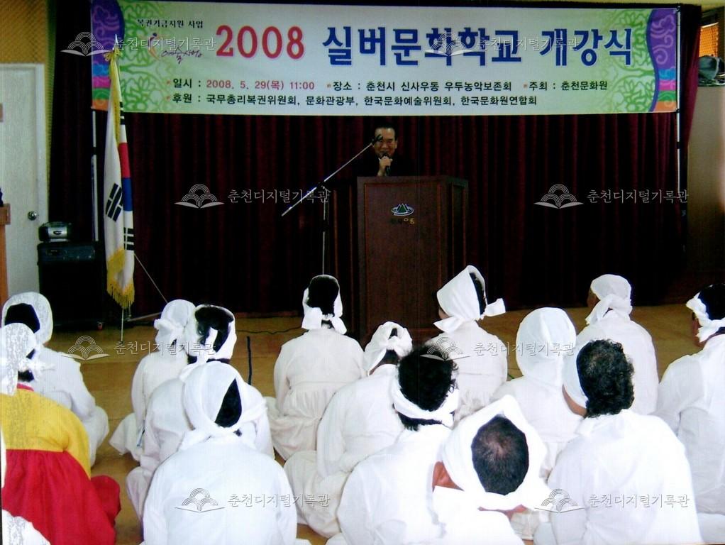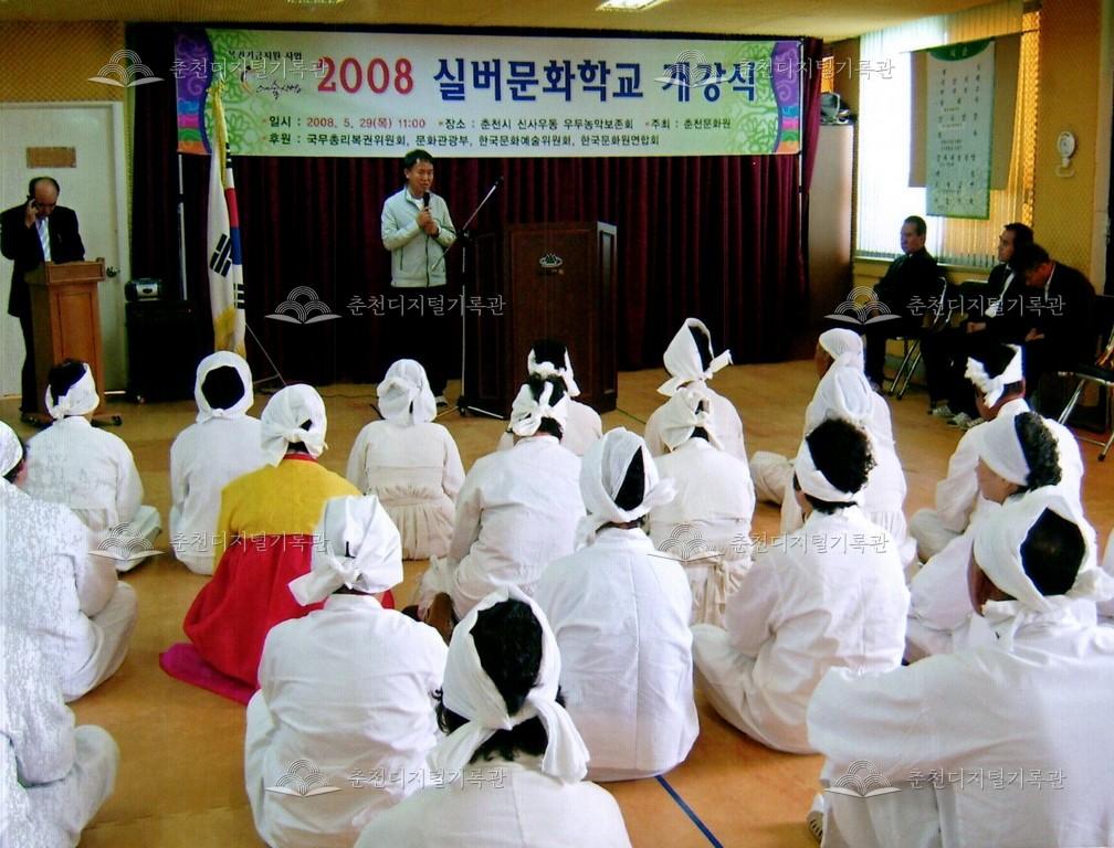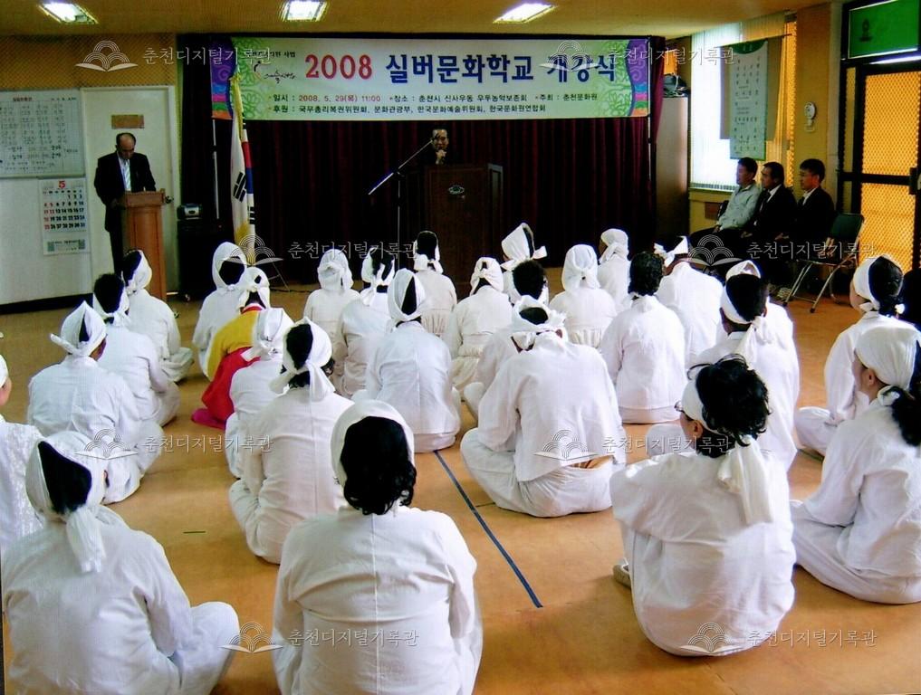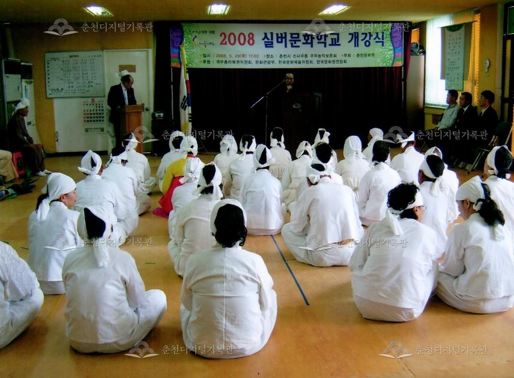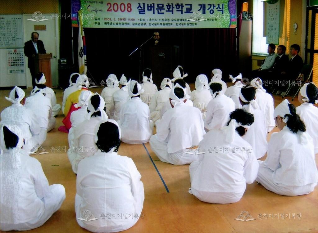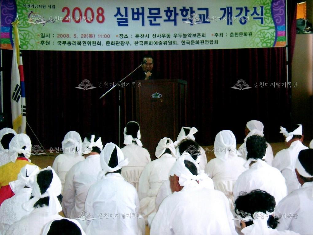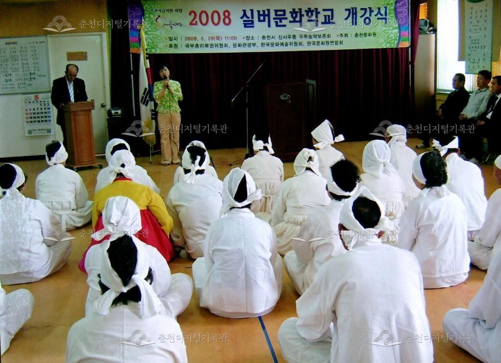 2008년 실버문화학교 개강식 사진 등록번호 00002706 생산일자 2008.05.29 생산지역 춘천시 우두동 생산자 춘천문화원 수집처 춘천문화원 소장자 춘천학연구소 내용 2008년 실버문화학교 개강식의 사진이다. 사용안내 비상업적 이용만 가능|©춘천디지털기록관 상업적 사용·수정·재배포는 저작권자 동의 필요 다운로드 목록보기