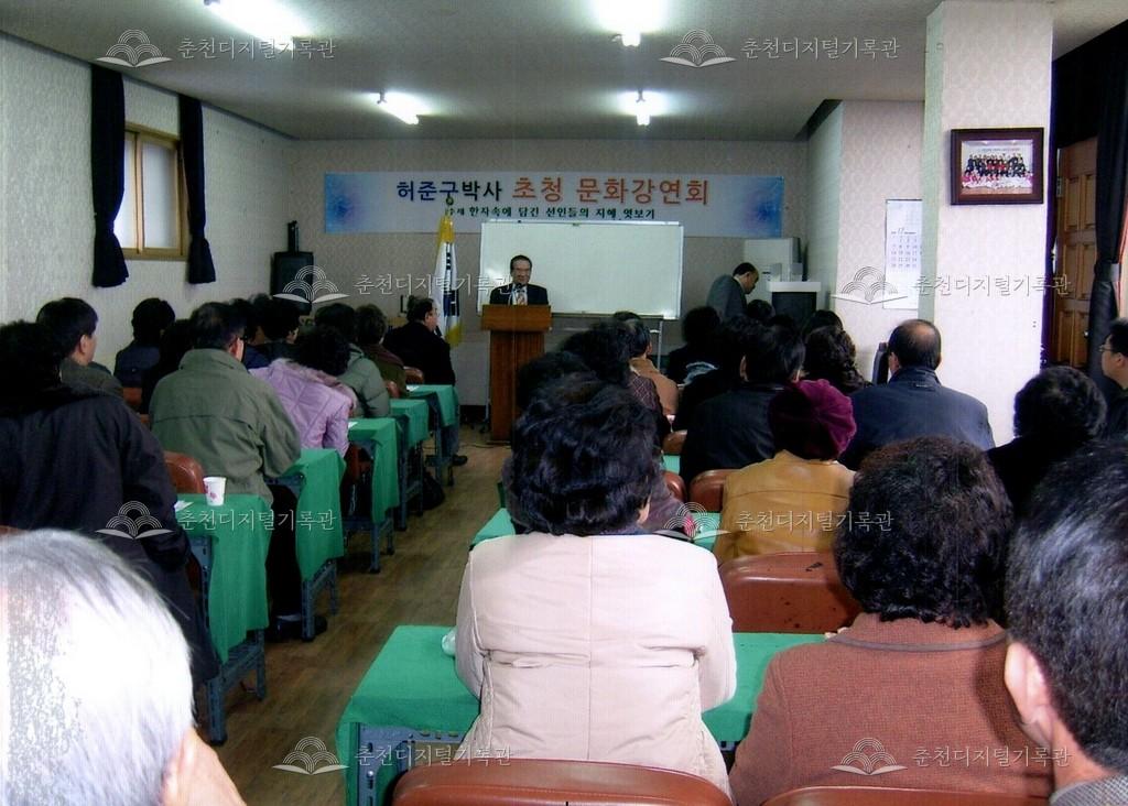 문화강연회 사진 등록번호 00002718 생산일자 2008 생산지역 춘천시 옥천동 생산자 춘천문화원 수집처 춘천문화원 소장자 춘천학연구소 내용 2008년 문화강연회 사진이다. 허준구 박사를 강사로 초청하여 한자 속에 담긴 선인들의 지혜 엿보기라는 주제로 진행되었다. 사용안내 비상업적 이용만 가능|©춘천디지털기록관 상업적 사용·수정·재배포는 저작권자 동의 필요 다운로드 목록보기