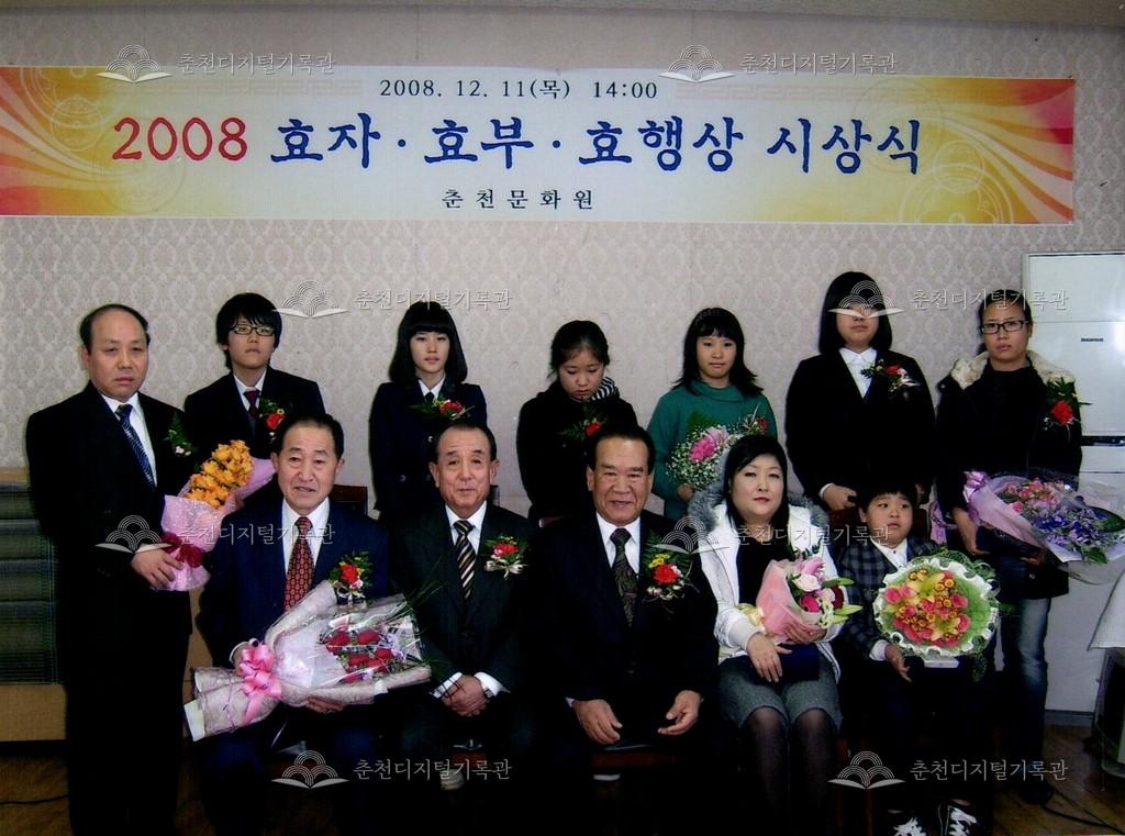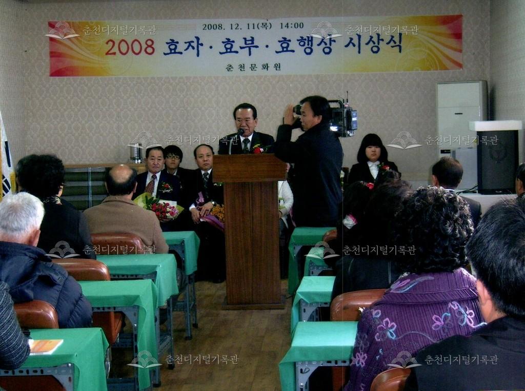 효자효부 효행상 시상식 사진 등록번호 00002723 생산일자 2008.12.11 생산지역 춘천시 옥천동 생산자 춘천문화원 수집처 춘천문화원 소장자 춘천학연구소 내용 2008년 효자효부 효행상 시상식 사진이다. 사용안내 비상업적 이용만 가능|©춘천디지털기록관 상업적 사용·수정·재배포는 저작권자 동의 필요 다운로드 목록보기