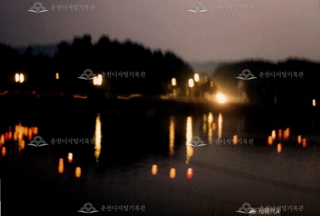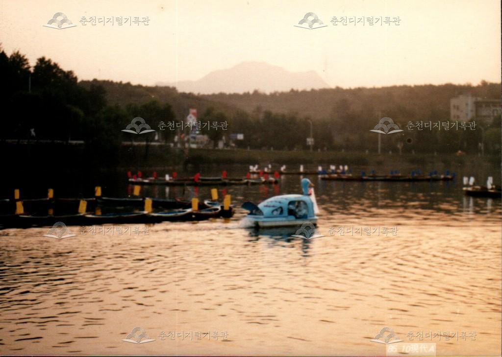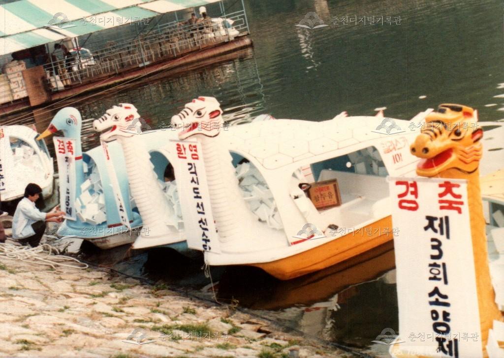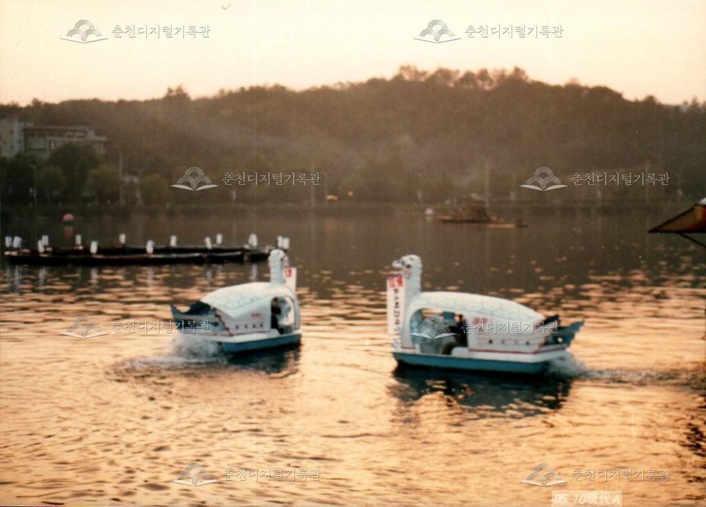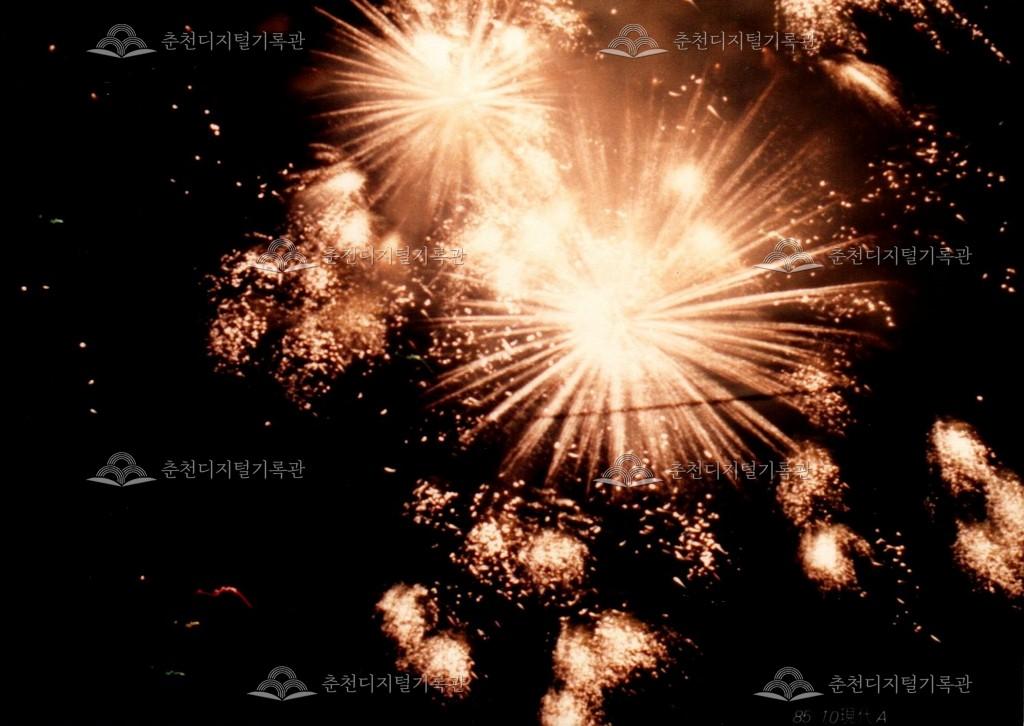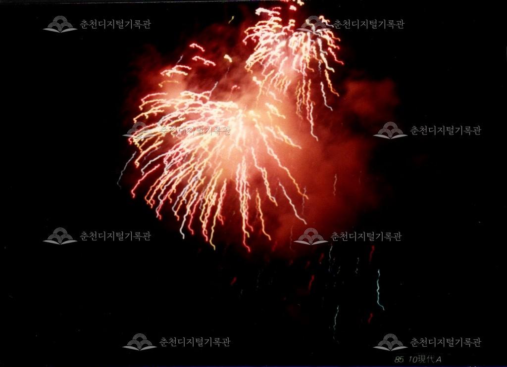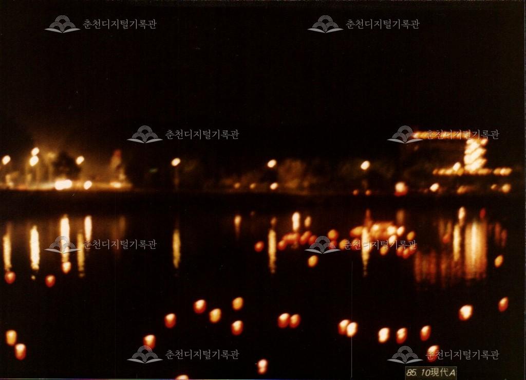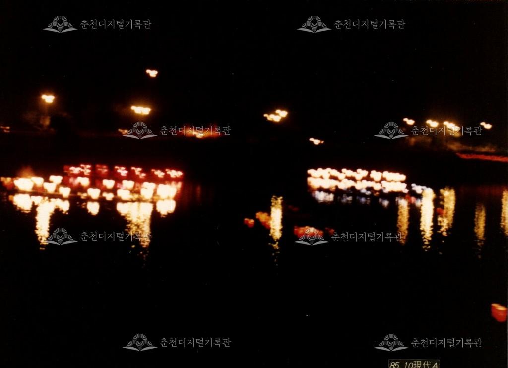 1985년 제3회 소양제(현재 소양강문화제) 당시 사진이다. 행사에 사용된 오리배와 불꽃놀이를 볼 수 있다.