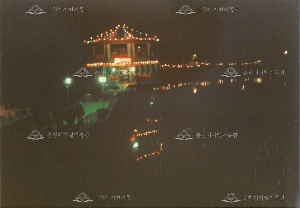 제7회 소양제 사진 등록번호 00002779 생산일자 1989.06 생산지역 춘천시 생산자 춘천문화원 수집처 춘천문화원 소장자 춘천학연구소 내용 1989년 제7회 소양제(현재 소양강문화제)의 불꽃놀이와 팔각정(호수의 집) 야경 사진이다. 사용안내 비상업적 이용만 가능|©춘천디지털기록관 상업적 사용·수정·재배포는 저작권자 동의 필요 다운로드 목록보기