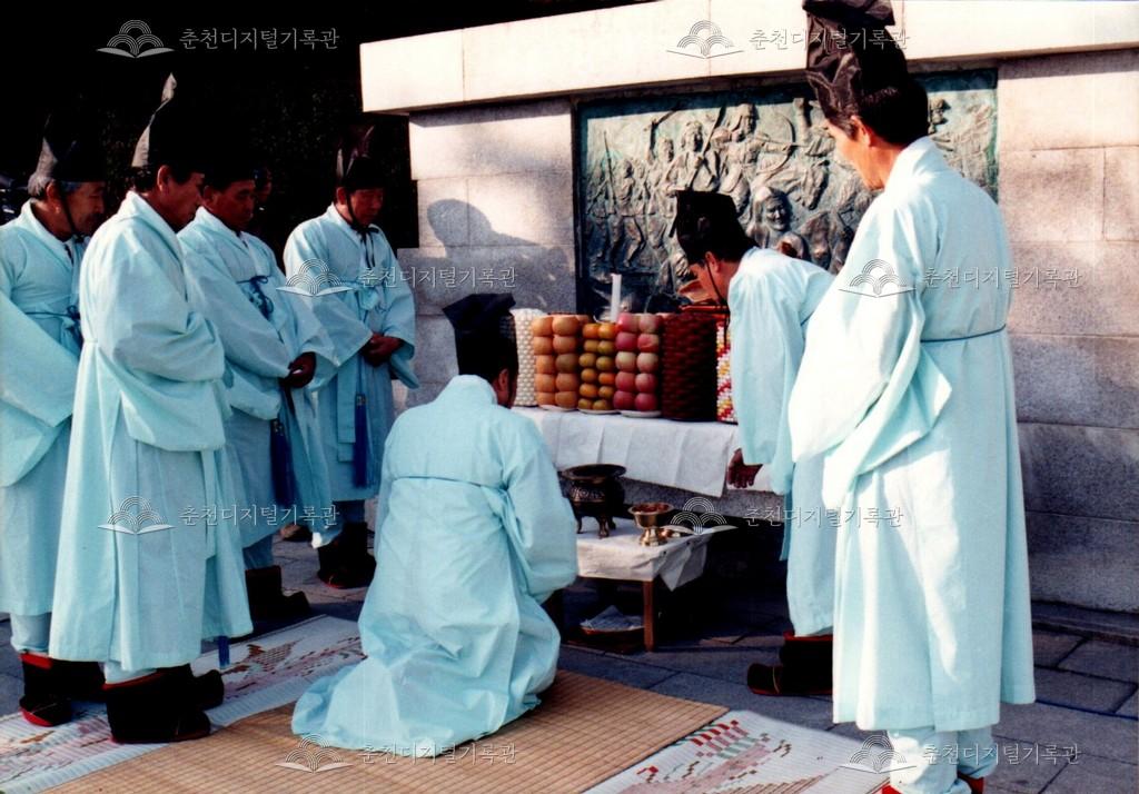 제18회 소양제 봉의산제 사진 등록번호 00002807 생산일자 1995.10 생산지역 춘천시 봉의동 생산자 춘천문화원 수집처 춘천문화원 소장자 춘천학연구소 내용 1995년 제18회 소양제(현재 소양강문화제)의 봉의산제(현재 충의제) 사진이다. 봉의산순의비에서 제를 올림으로 소양제가 시작된다. 자세히 보기 닫기 사용안내 비상업적 이용만 가능|©춘천디지털기록관 상업적 사용·수정·재배포는 저작권자 동의 필요 다운로드 목록보기