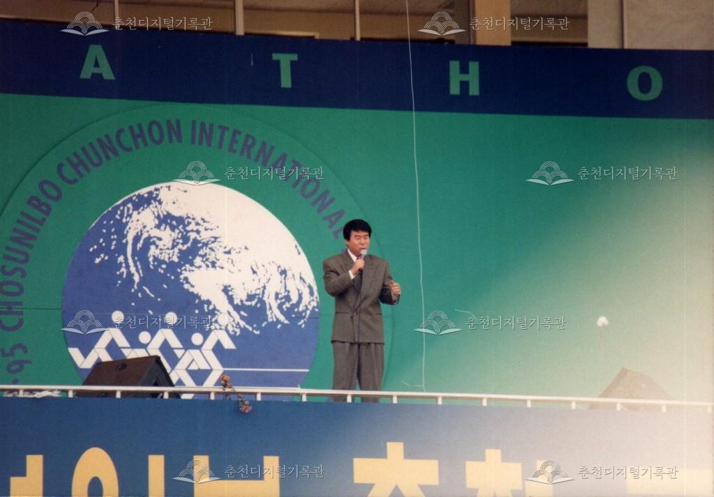 1995년 조선일보 국제마라톤의 축하공연 사진이다. 1946년부터 매년 10월 춘천에서 개최된 마라톤 대회는 1994년 국제코스로 공인 받았고, 이후 1995년 국제대회로 승격되어 제18회 소양제와 함께 개최되었다. 이를 축하하기 위해 송대관 등 축하공연이 진행되었다.