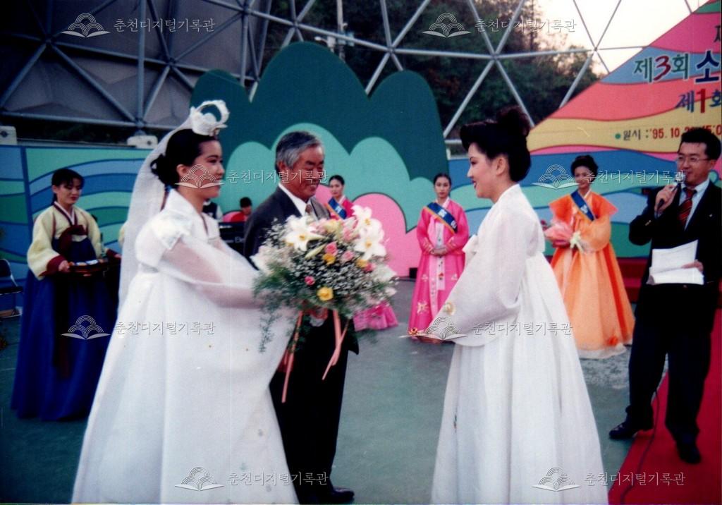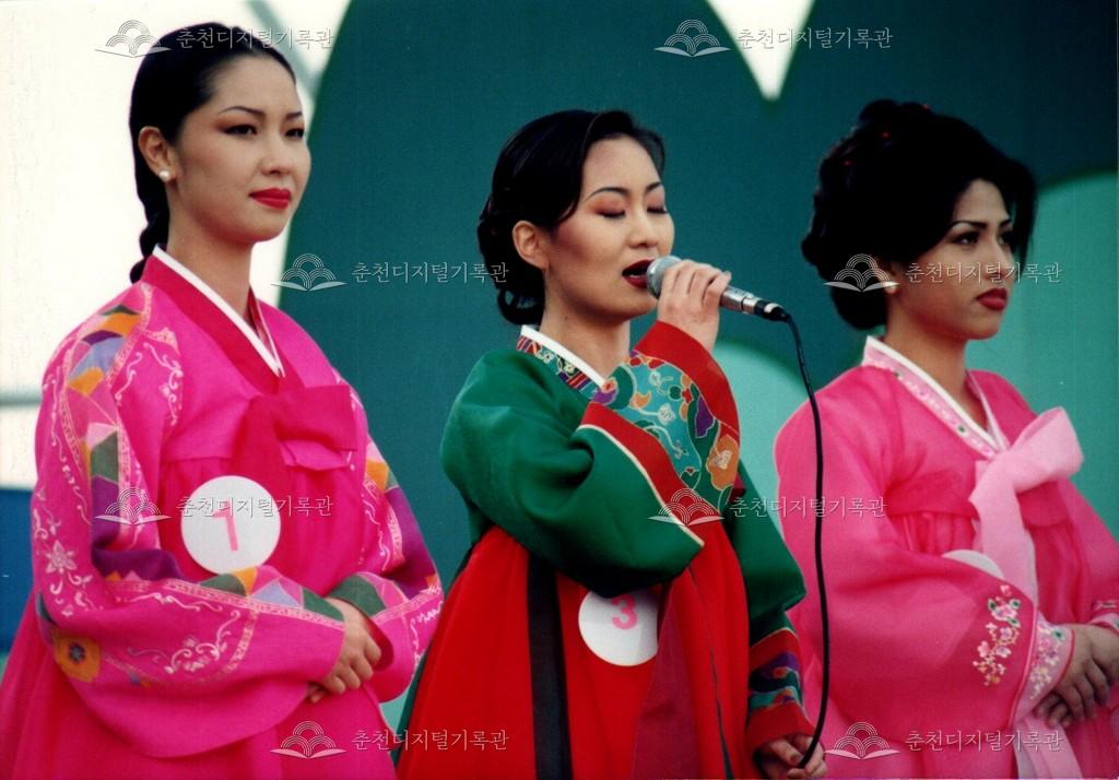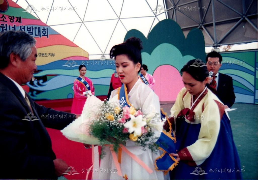 제18회 소양제 소양강처녀 선발대회 사진 등록번호 00002829 생산일자 1995.10.29 생산지역 춘천시 삼천동 생산자 춘천문화원 수집처 춘천문화원 소장자 춘천학연구소 내용 1995년 제18회 소양제(현재 소양강문화제)의 소양강처녀 선발대회 사진이다. 공지천 시민공원(현재 의암공원)에서 제3회 소양강처녀 선발대회가 진행되었다. 자세히 보기 닫기 사용안내 비상업적 이용만 가능|©춘천디지털기록관 상업적 사용·수정·재배포는 저작권자 동의 필요 다운로드 목록보기