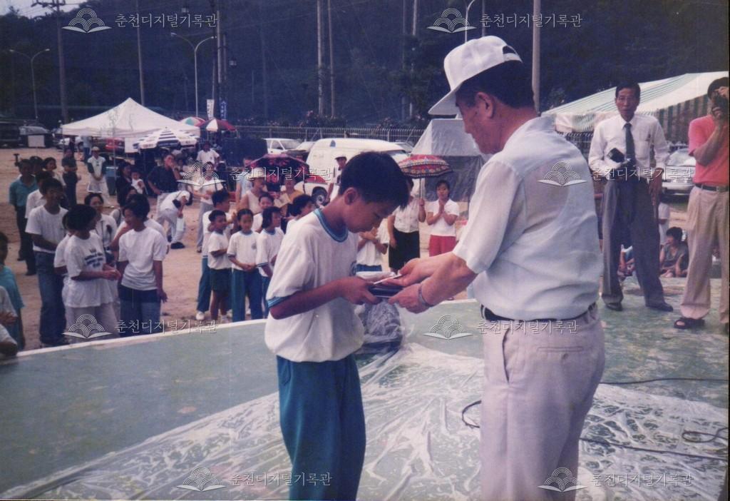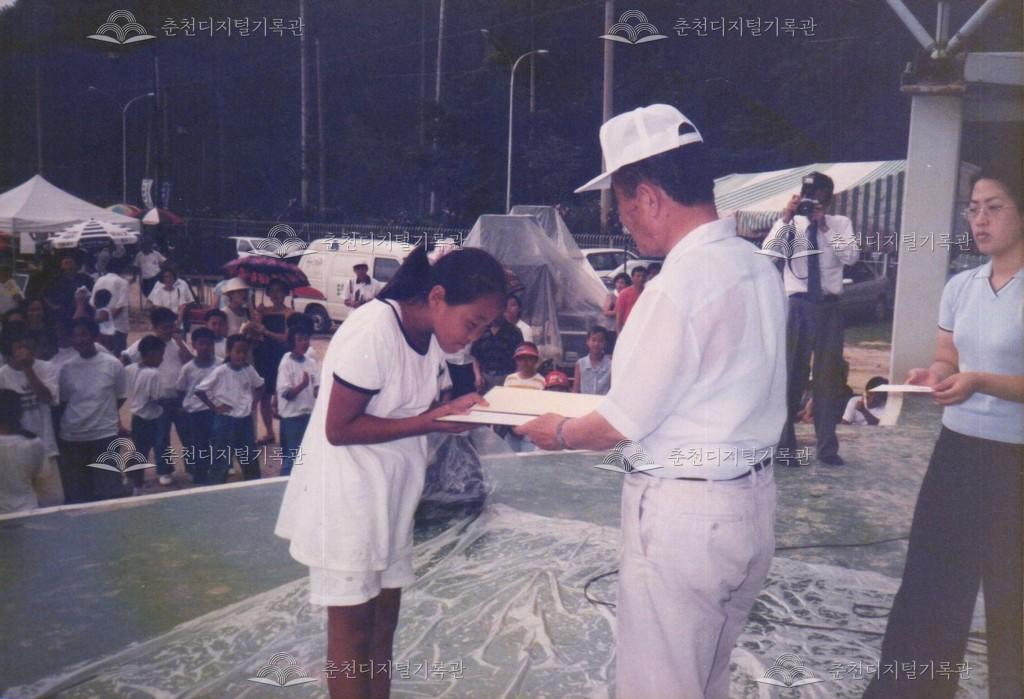 1996년 제19회 소양제(현재 소양강문화제)의 사물놀이 대회 사진이다. 공지천 시민공원(현재 의암공원)에서 진행되었다.