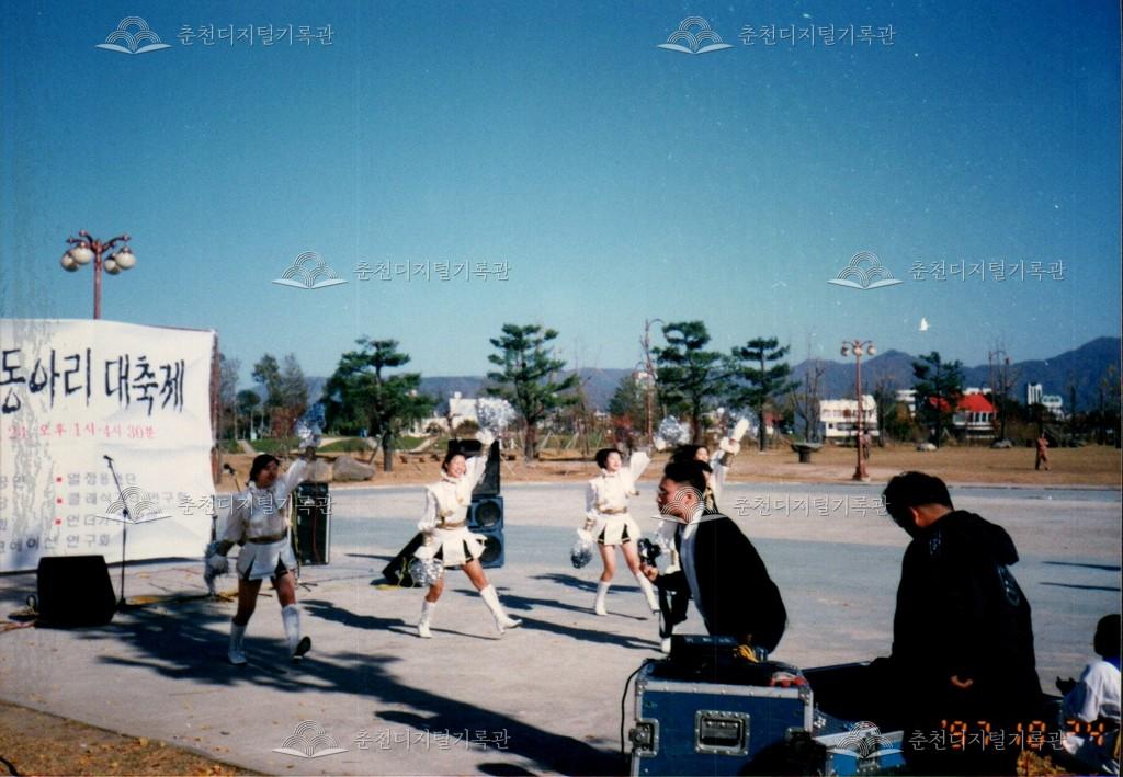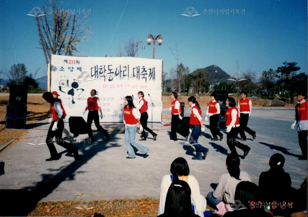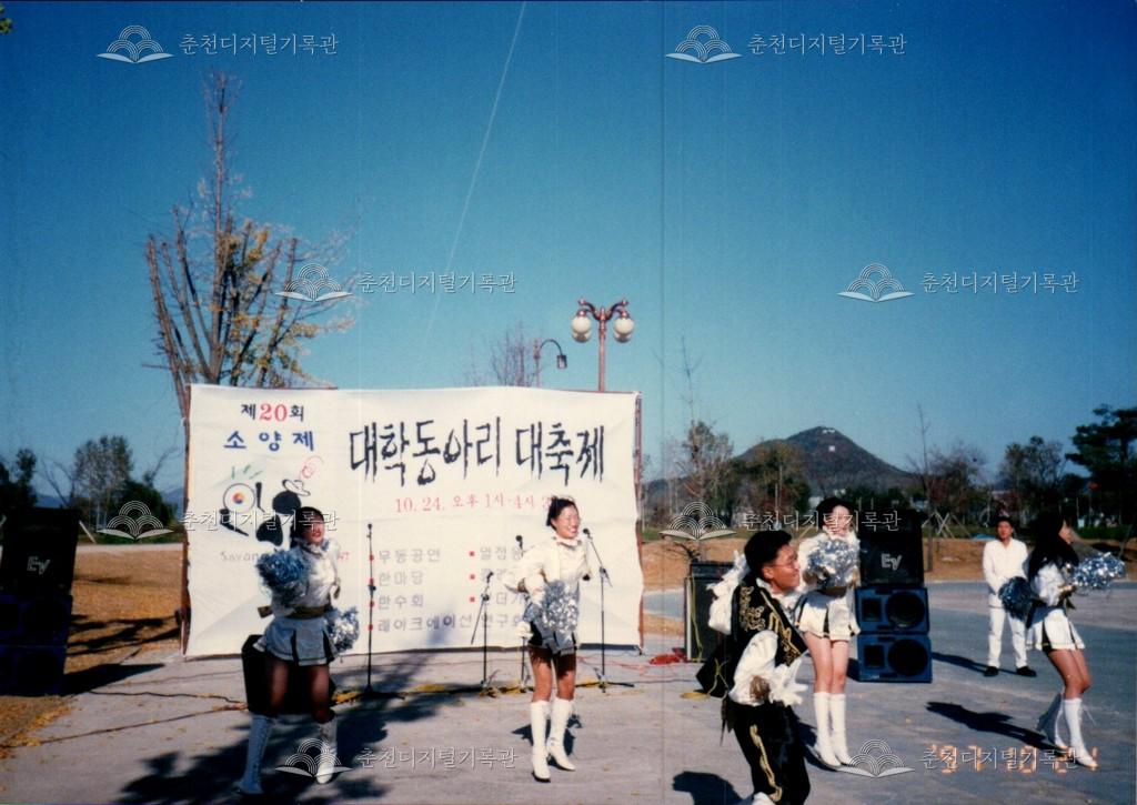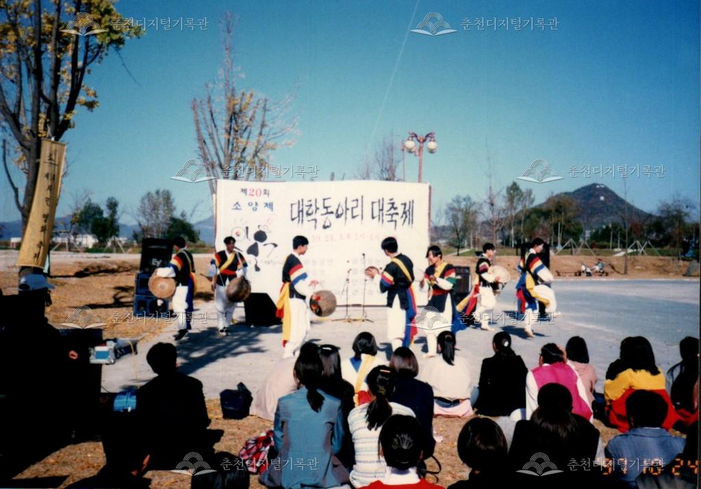 제20회 소양제 대학동아리 대축제 사진 등록번호 00002869 생산일자 1997.10.24 생산지역 춘천시 삼천동 생산자 춘천문화원 수집처 춘천문화원 소장자 춘천학연구소 내용 1997년 제20회 소양제(현재 소양강문화제)의 대학동아리 대축제 사진이다. 사물놀이, 응원단 등의 공연이 진행되었다. 사용안내 비상업적 이용만 가능|©춘천디지털기록관 상업적 사용·수정·재배포는 저작권자 동의 필요 다운로드 목록보기