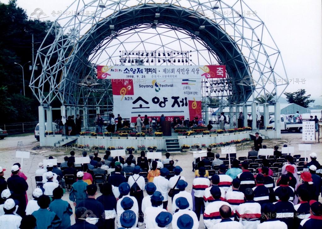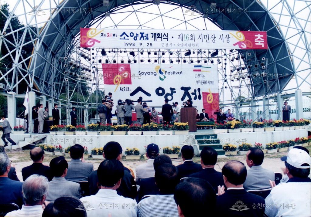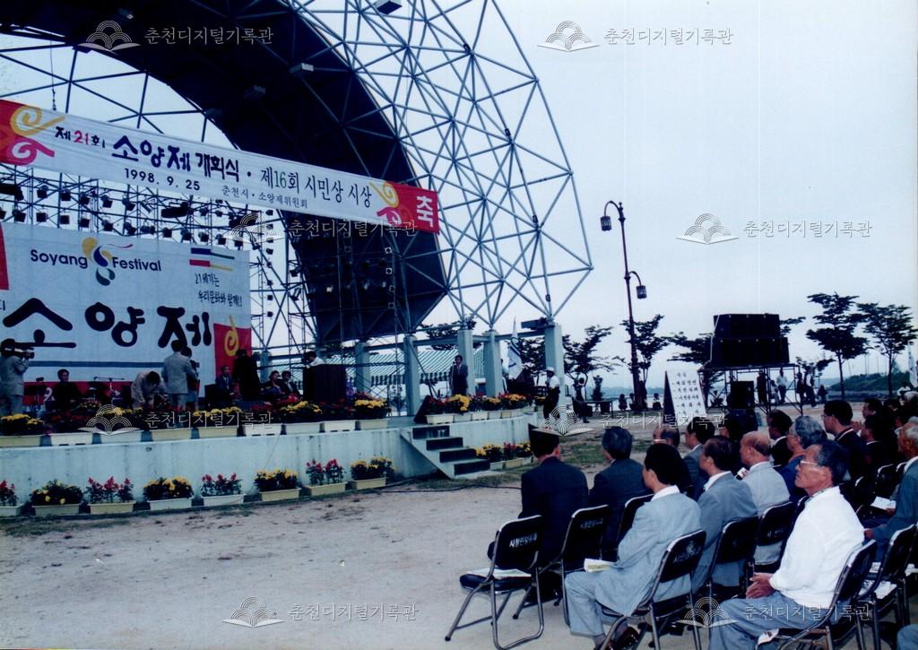 1998년 제21회 소양제(현재 소양강문화제)의 개회식 사진이다. 개회식 중 제16회 시민상 시상식이 함께 진행되었다.