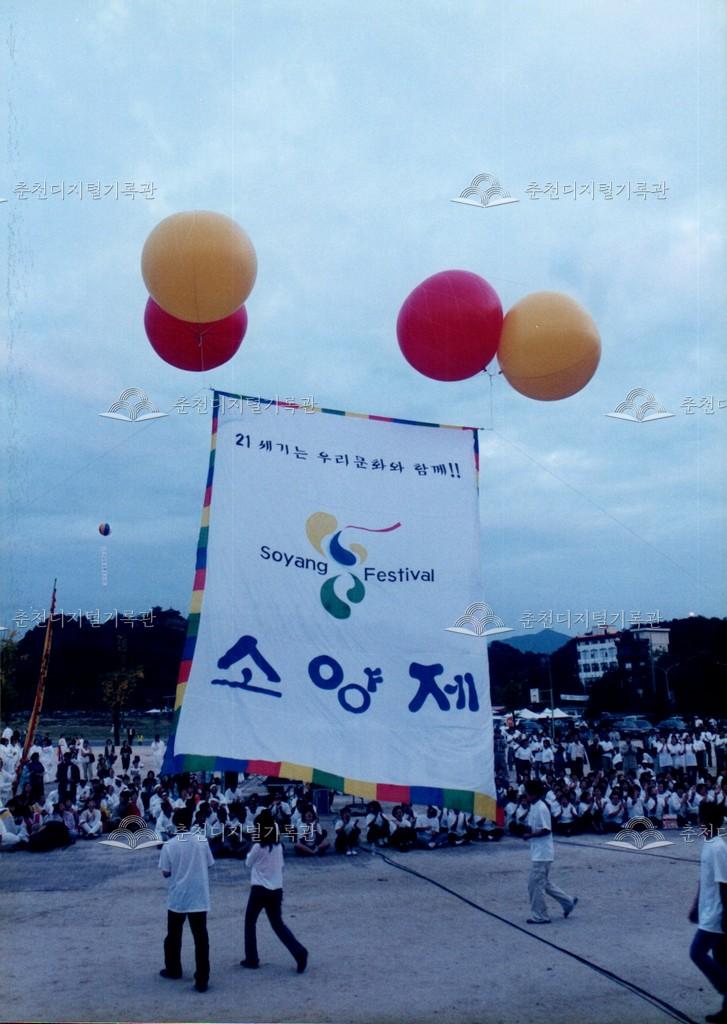 제21회 소양제 사진 등록번호 00002897 생산일자 1998.09.24 생산지역 춘천시 삼천동 생산자 춘천문화원 수집처 춘천문화원 소장자 춘천학연구소 내용 1998년 제21회 소양제(현재 소양강문화제) 현수막 사진이다. 21세기는 우리문화와 함께라는 문구가 적힌 현수막이 대형 풍선과 공중에 달려있다. 자세히 보기 닫기 사용안내 비상업적 이용만 가능|©춘천디지털기록관 상업적 사용·수정·재배포는 저작권자 동의 필요 다운로드 목록보기