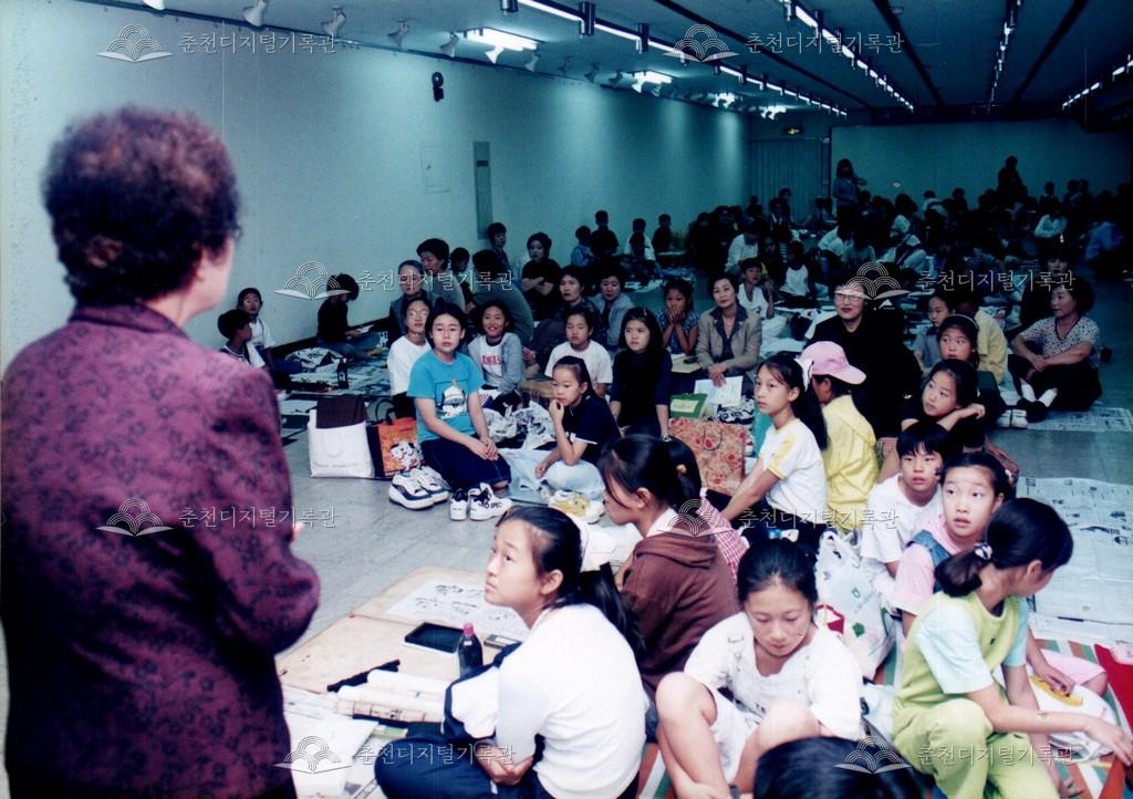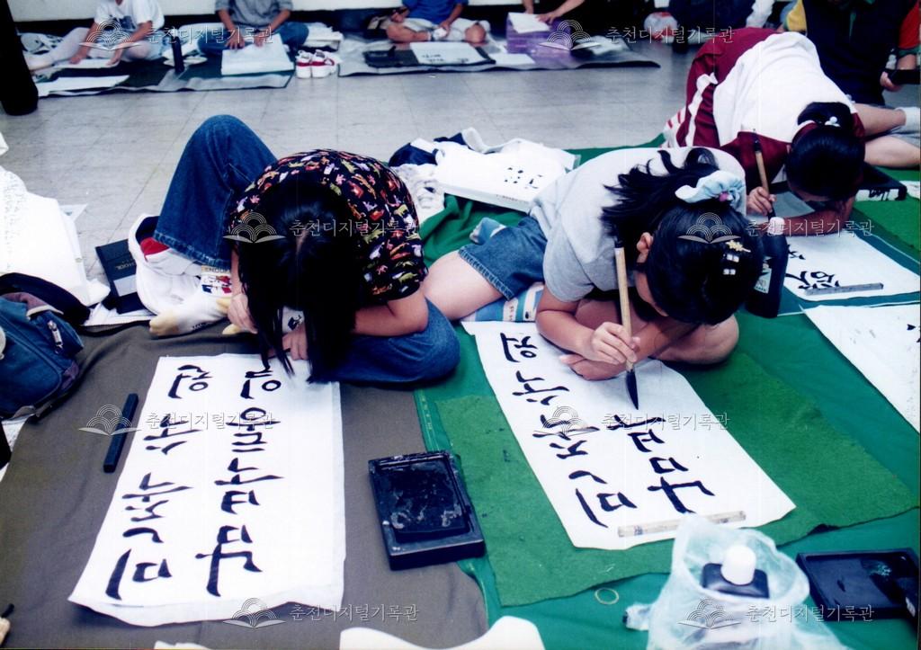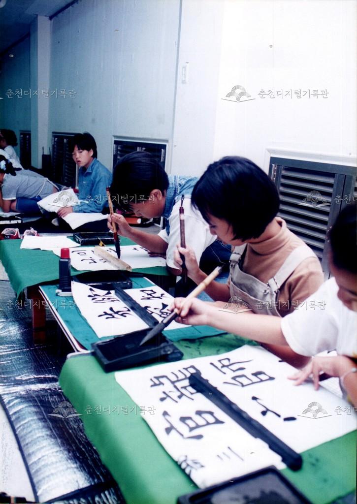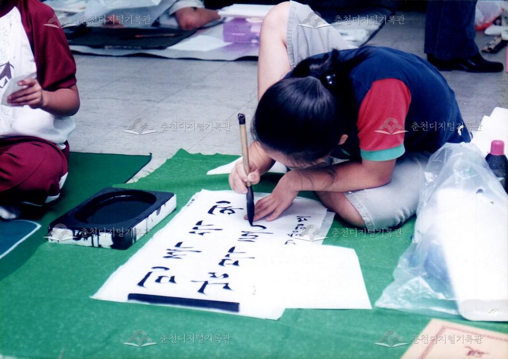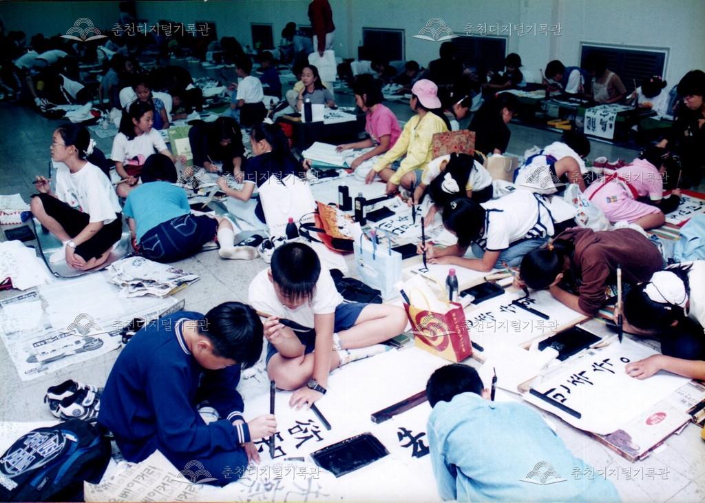 1998년 제21회 소양제(현재 소양강문화제)의 초등학교 휘호 대회 사진이다. 춘천시민회관에서 진행되었다.