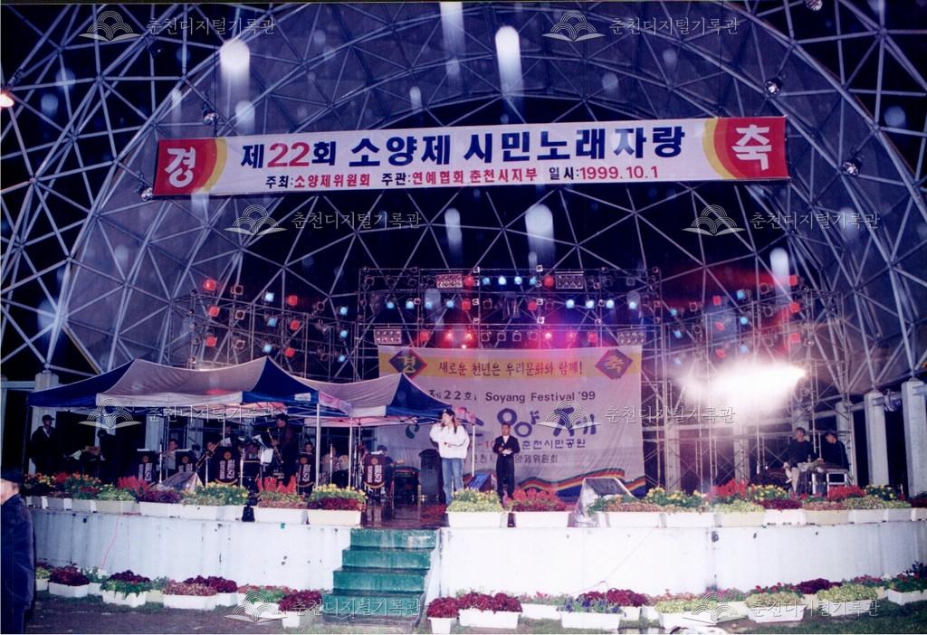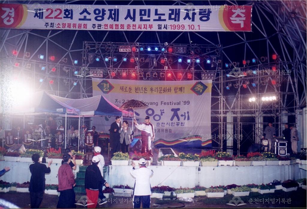 제22회 소양제 시민노래자랑 사진 등록번호 00002939 생산일자 1999.10.01 생산지역 춘천시 삼천동 생산자 춘천문화원 수집처 춘천문화원 소장자 춘천학연구소 내용 1999년 제22회 소양제(현재 소양강문화제) 시민노래자랑 사진이다. 방송인 황기순이 진행하고 춘천시민과 초대가수의 무대로 꾸려졌다. 자세히 보기 닫기 사용안내 비상업적 이용만 가능|©춘천디지털기록관 상업적 사용·수정·재배포는 저작권자 동의 필요 다운로드 목록보기