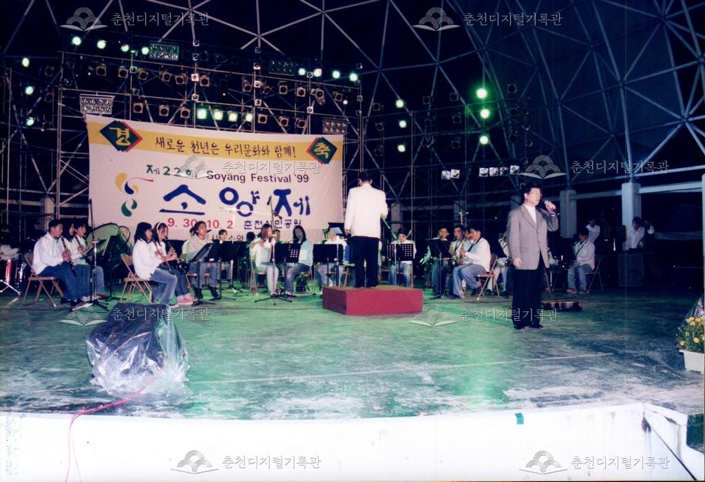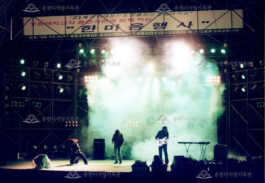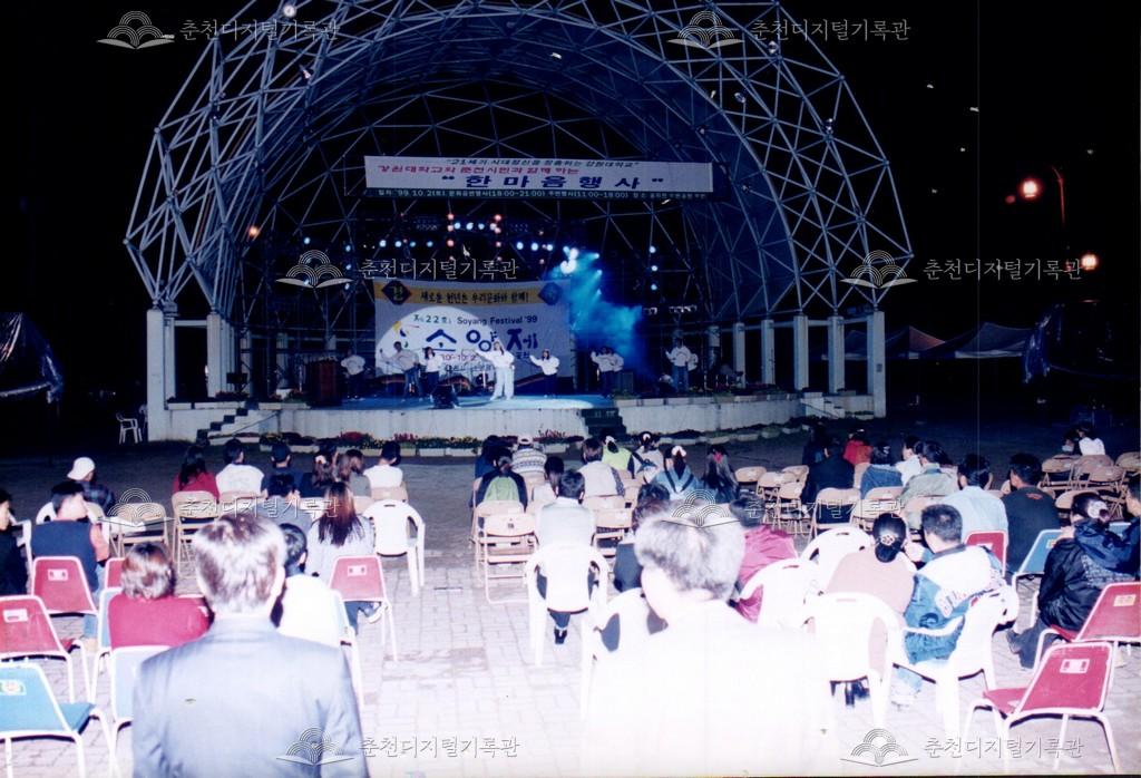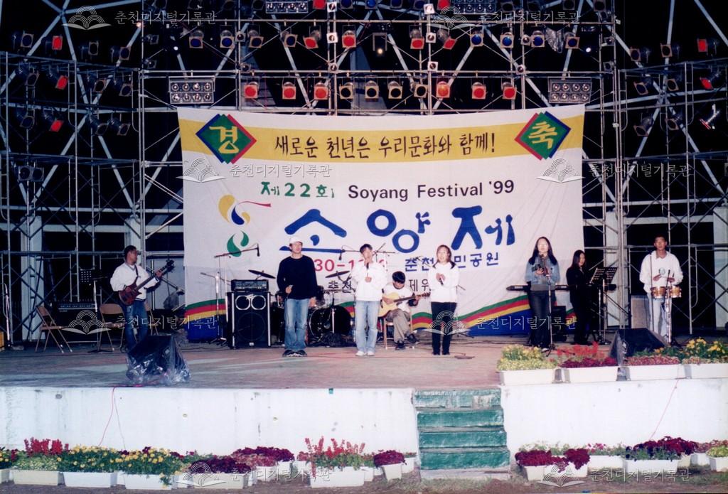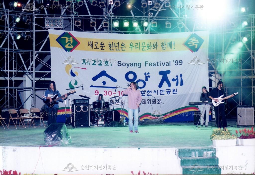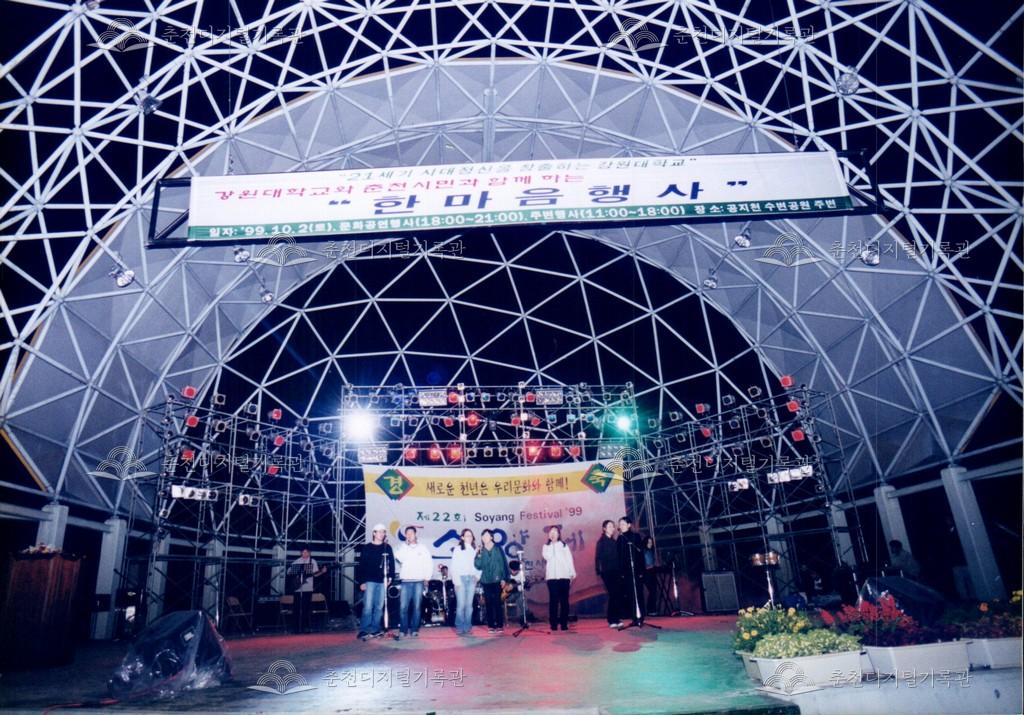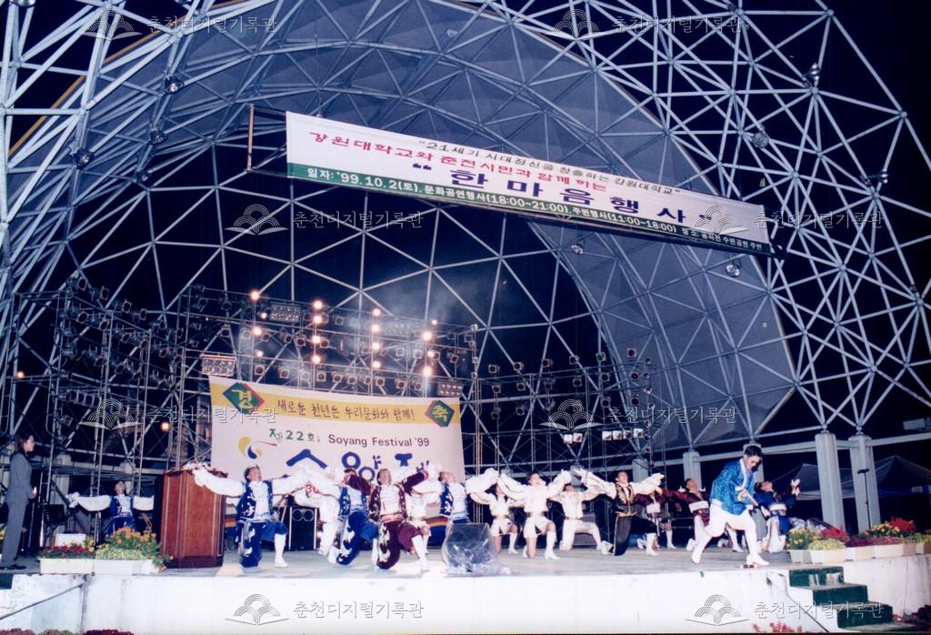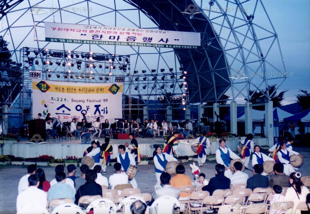 1999년 제22회 소양제(현재 소양강문화제) 한마음행사 사진이다. 강원대학교가 진행한 행사로서 사물놀이, 합주, 응원, 노래 등 다양한 공연과 가수 권진원의 초대 무대를 선보였다.
