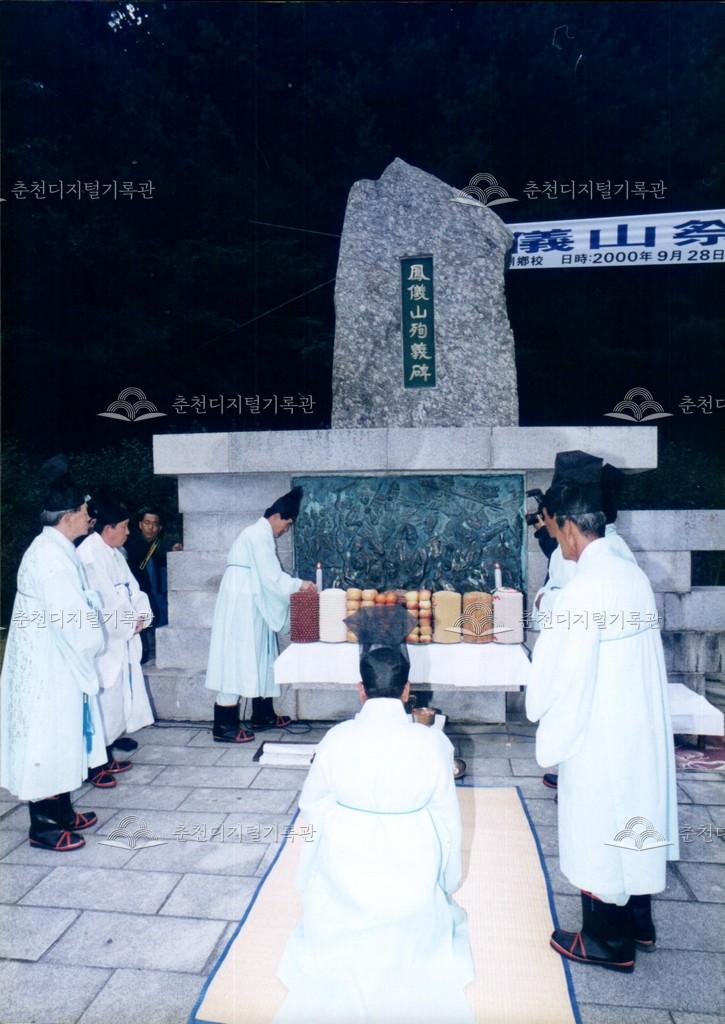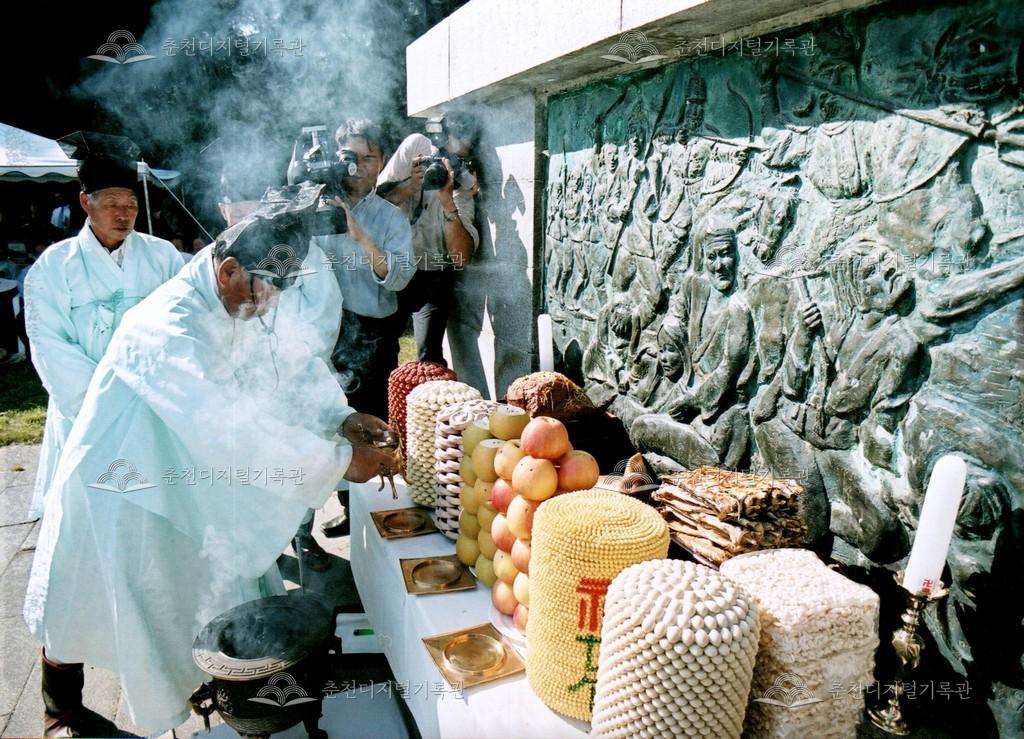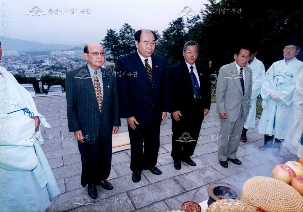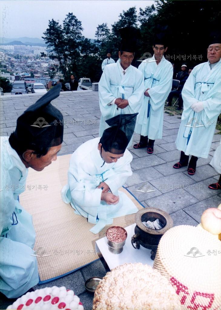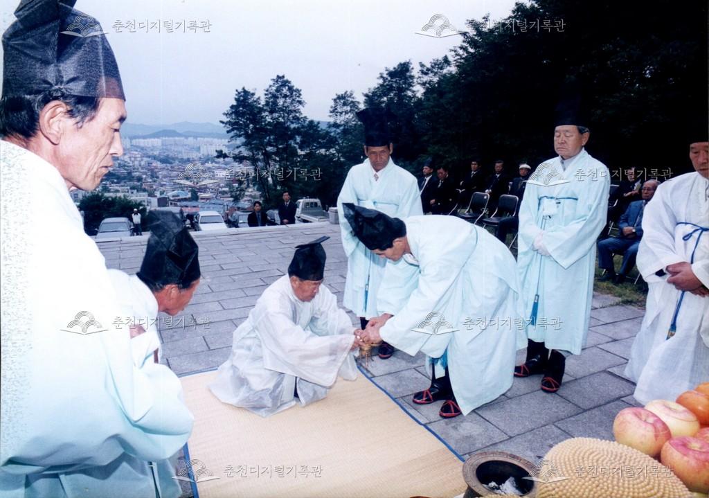 제23회 소양제 봉의산제 사진 등록번호 00002957 생산일자 2000.09.28 생산지역 춘천시 삼천동 생산자 춘천문화원 수집처 춘천문화원 소장자 춘천학연구소 내용 2000년 제23회 소양제(현재 소양강문화제)의 봉의산제(현재 충의제) 사진이다. 춘천향교 주관으로 봉의산순의비에서 진행되었다. 자세히 보기 닫기 사용안내 비상업적 이용만 가능|©춘천디지털기록관 상업적 사용·수정·재배포는 저작권자 동의 필요 다운로드 목록보기