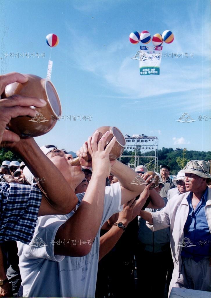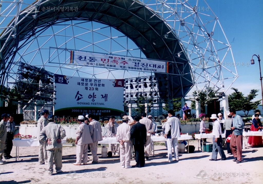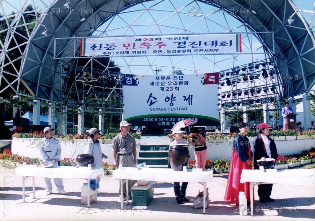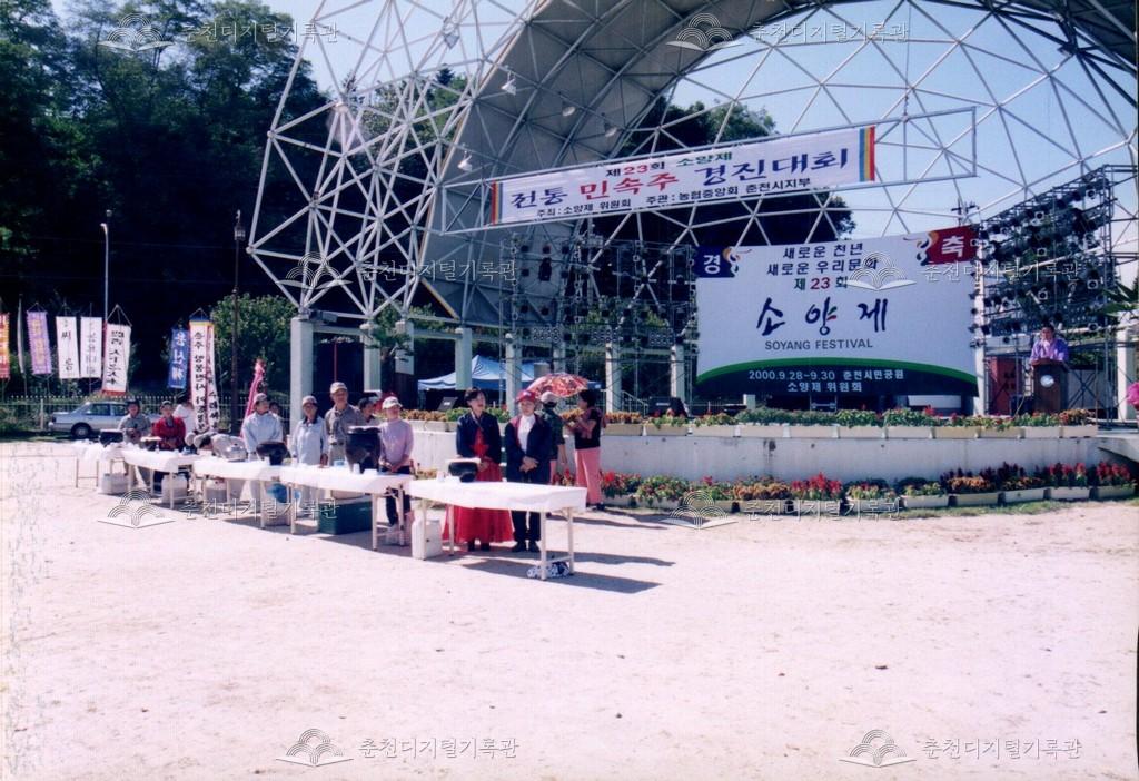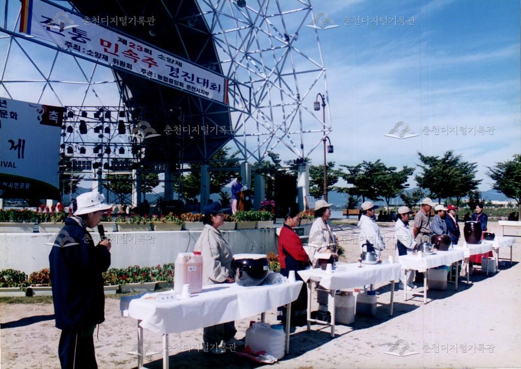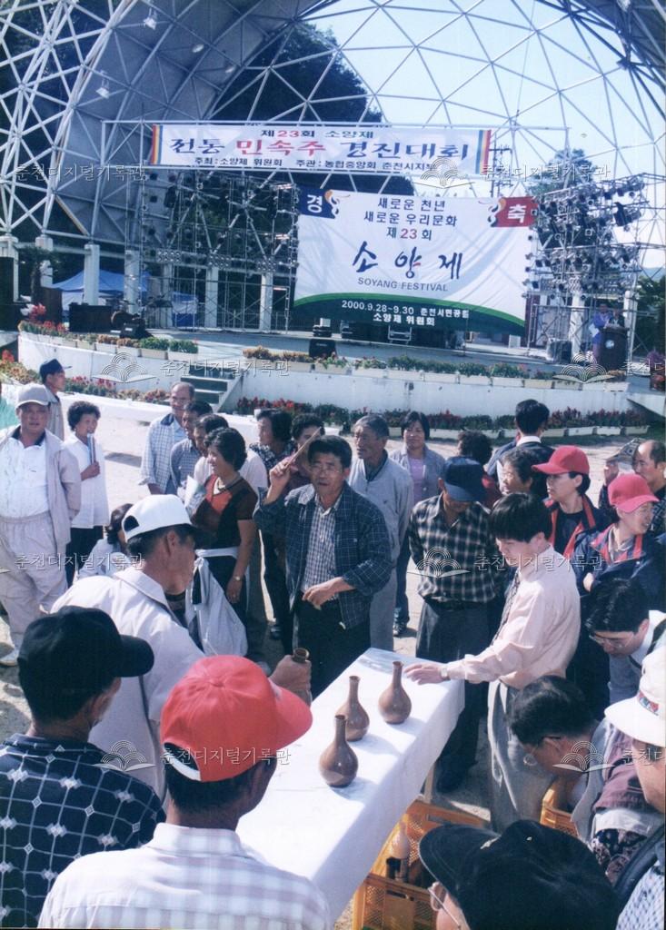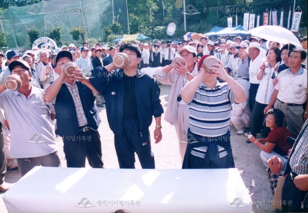 제23회 소양제 민속주 경진대회 사진 등록번호 00002962 생산일자 2000.09.29 생산지역 춘천시 삼천동 생산자 춘천문화원 수집처 춘천문화원 소장자 춘천학연구소 내용 2000년 제23회 소양제(현재 소양강문화제)의 전통 민속주 경진대회 사진이다. 대회 후 시상도 함께 진행되었다. 사용안내 비상업적 이용만 가능|©춘천디지털기록관 상업적 사용·수정·재배포는 저작권자 동의 필요 다운로드 목록보기