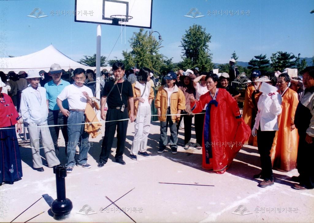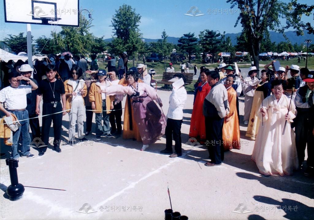 제23회 소양제 민속놀이 사진 등록번호 00002965 생산일자 2000.09.29 생산지역 춘천시 삼천동 생산자 춘천문화원 수집처 춘천문화원 소장자 춘천학연구소 내용 2000년 제23회 소양제(현재 소양강문화제)의 민속놀이 사진이다. 투호던지기를 하는 모습이다. 사용안내 비상업적 이용만 가능|©춘천디지털기록관 상업적 사용·수정·재배포는 저작권자 동의 필요 다운로드 목록보기